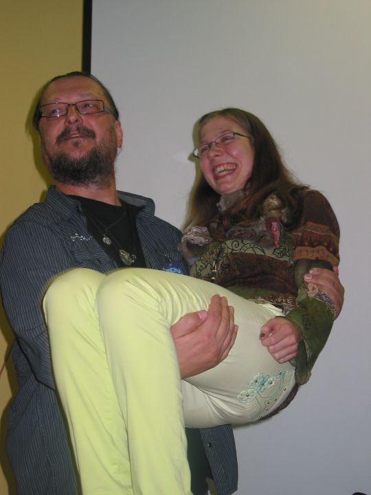 S nasáváním kultury jsem započal rovnou při divadelním představením crosoveru Pán prstenů: Hvězdné společenstvo. Ačkoliv se jednalo o brzkou ranní hodinu (11 dopoledne), přestože se kupovala místenka (25 Kč) a třebaže šlo o již druhé předvedení kusu (první proběhlo v rámci letošního Starconu), byl divadelní sál téměř vyprodán. Tradiční jeviště a hlavně tradiční hlediště umožnilo všem divákům dobrý výhled, což se snad podepsalo na tom, že tentokrát se tleskalo snad ještě o něco více než poprvé. Znovu jsme se bavili a znovu chechtali. Ačkoliv jsem se zařekl, že nebudu znova fotit, fotil jsem. Ačkoliv jsem si říkal, že už referát nebudu podávat, skutečně ho nepodám. Jenom zmíním, že pro přechod zasněženého průsmyku Caradhras si tentokrát Boromir Johnak vzal bačkůrky. A ještě dodám, že podle traileru k druhému dílu bude Johnak představovat Gluma. Tentokrát jsem nevideoval jako na Starconu, profesionální záznam by prý měl být k dispozici již brzy. Doufejme že dříve, než umělecký soubor předvede pokračování na Starconu 2012.
