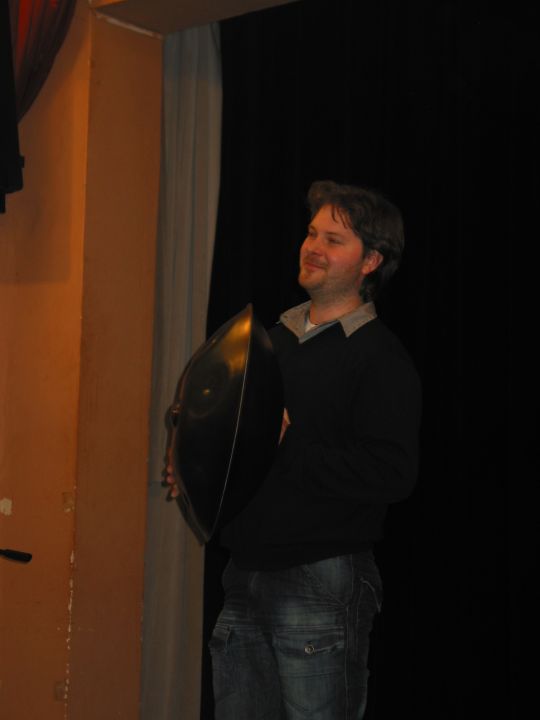 Dvě hodiny utekly jako nic a bylo osm večer, neboli čas zlatého hřebíku každého conu, Galavečera, přesněji Večeru fantazie. Oželil jsem přednášku RNDr. Vladimíra Wagnera, CSc. o (možná) nadsvětelném neutrinu a opět se vydal do divadelního sálu. Kde jsem shlédl - vpodstatě kulturní vložky různé úrovně. Po přivítání hlavním organizátorem Vaškem Pravdou nastoupila břišní tanečnice se závoji, a byla prostě skvělá. Po ní se objevil bavič Petr Vydra z pořadu HBO Na stojáka. Občas tento pořad sleduji a vždy se bavím. Tentokrát jsem se nebavil. Vtipy na jména přítomných diváků a jejich možné profese (Červenka - vy byste mohl být řezník) byly slabé. Škodaže se mu nepřihlásila naše milá Darth Zira, občanským jménem Scarlett Rauschgoldová, mohla být sranda. Dojem jsme si spravili při skvělém vystoupení hráče na "hang". Nástroj se poněkud podobá létajícímu talíři. Dvě svařené puklice s různými ploškami vydávají při správném poklepu prsty náramně melodické zvuky. Viděl jsem ho poprvé, přičemž nástroj je na světě už dlouhých deset let. Slyšel jsem také poprvé, a slyšení bylo uchvacující. Škodaže jsem si nestihl zapsat jméno perkusionisty.