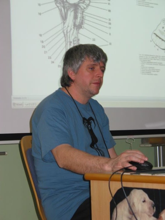 Linie FC+MM se pak přestěhovala do své Stodvojky, kterou jsem tedy chvíli hledal, neb byla označena dosti ledabyle. Petr Zach zde zábavně hovořil o motorických systémech CNS, tedy "centrálně nervové soustavy". Poněkud nás vyděsil svým postřehem, že se "kortikalizují struktury", které zatím mají "autonomii". Přeloženo: Zatím dýcháme nevědomky, vypadá to, že na dýchání budeme muset myslet, abychom se neudusili. A na pravidelný tep srdce, například. Veselejší bylo povídání o zrcadlových neuronech, které zajišťují přednostní vidění jedince svého druhu a vyvolávají vzorce chování podle toho druhého: Reagujeme na pohyb kolegy nápodobou stejného pohybu. To se dá využít například při neurorehabilitaci. Moje teorie je, že zrcadlové neurony vznikly primárně k aktivaci pohybů stád antilop, hejn volavek a ryb: Dělej, co jiní. Když utíkají, utíkej. Obvykle jde o užitečný pohyb – proto přežili jen jedinci, kteří včas utekli a svůj gen přenesli na další generace. Při davovém chování však může vést bezhlavý útěk diváků ze stadionu nebo hudební veselice ke krutým důsledkům… Další námět pro povídku!