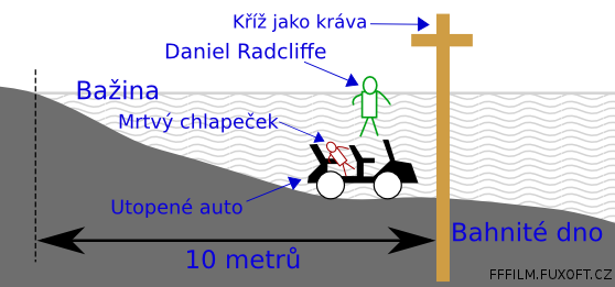 Film vrcholí scénou, kdy se Radcliffe snaží vylovit z auta utopeného v husté černé bažině mrtvého chlapečka, kterého nikdo předtím vylovit nedokázal (protože je bažina moc hustá / černá / jedovatá). Zřejmě na to neměli stroje. Zajímavé je, že někdo měl stroje na to, aby metr vedle toho auta zarazil do bahnitého dna na chlapečkovu památku kříž jako kráva, vyčuhující půldruhého metru nad hladinu... Může mi to nějaký statik vysvětlit?