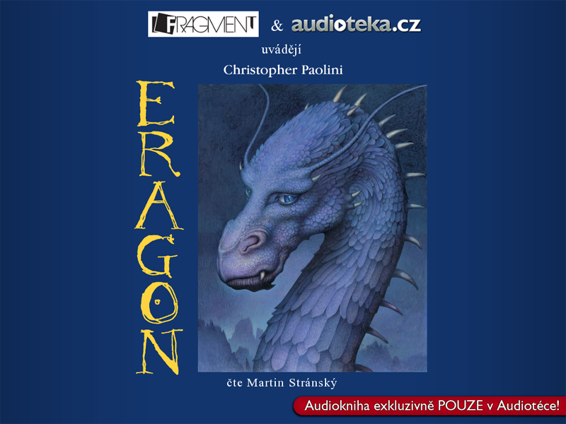 Dnešní knižní soutěž je tak trochu chytrá horákyně. Hrát totiž budete o knihu-neknihu! Dozvíte se příběh, ale nepřečtete ani řádku. Audioknih stále není na českém trhu extra velký výběr. Nejspíš proto se nakladatelství Fragment rozhodlo po nebývalém úspěchu celého Odkazu Dračích jezdců v papírové podobě, vydat první díl této tetralogie také v mluvené formě. Příběh Eragona a Safiry, odehrávající se v první knize ságy s názvem Eragon si tak můžete vychutnat kdekoli, třeba i na cestách za prací, kdy se musíte věnovat kroucení volantem a šlapání na pedály. Svůj velmi charismatický hlas propůjčil všem postavám jeden český (dnes už relativně známý) herec a dabér. A naše soutěžní otázka je nasnadě: