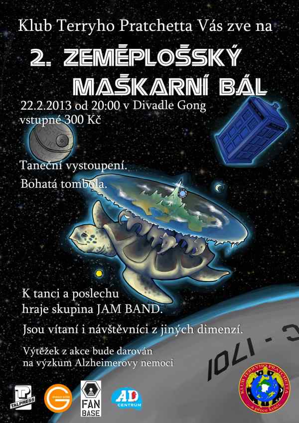 Rok se s rokem sešel a Klub Terryho Pratchetta vás srdečně zve na již druhý Zeměplošský maškarní bál, který se bude konat v pátek 22. února 2013 od 20:00 hodin ve velkém sále Divadla Gong (Sokolovská 969/191, Praha 9 – Libeň, zastávka MHD „Divadlo Gong“, tramvaj č. 16). A jelikož je i období zamilovaných, kteří v teple svých náručí mohou trávit Svatého Valentýna u nějakého romantického filmu, rozhodli jsme se vás trochu provětrat a nabídnout jednomu páru možnost to rozparádit na této skvělé benefiční akci.