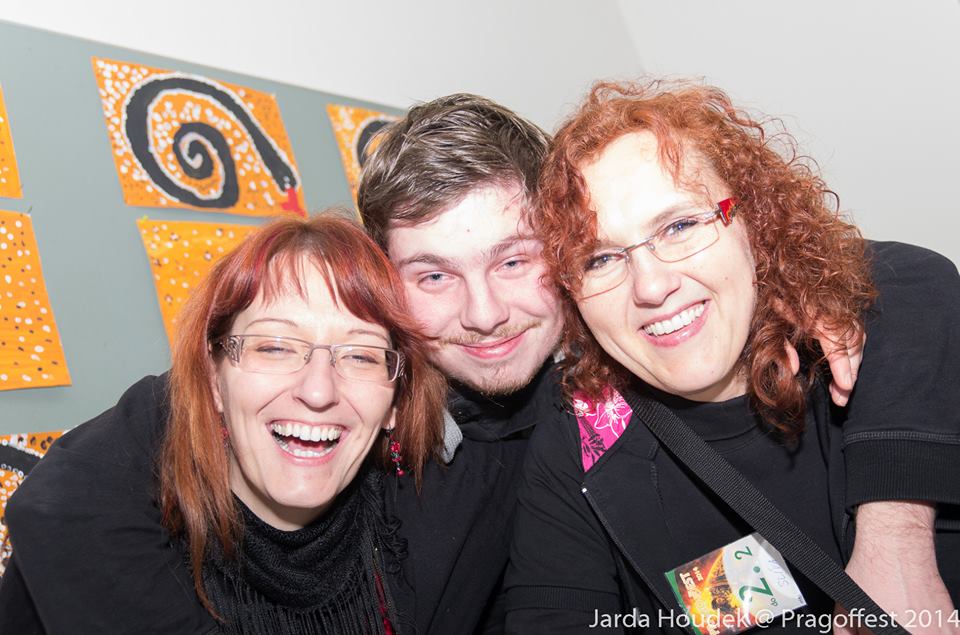 Ale abys neřekla: ta fotka, na které je Martin se mnou a s Haninou Veselou, tak ta je z letošního Pragoffestu, fotil to Jarda Houdek, bylo to někdy kolem půlnoci ve festivalovém báru a byli jsme všichni lehce (někteří nejmenovaní trochu více) omámeni konzumací alkoholických nápojů, proto jsme tak vysmátí, neb se nám móc dobře povídalo... přesně jak to na fesťáku má být, když skončí všechny přednášky... hm, ale to taky asi nebude přesně to, co by sis představovala, že? :-D