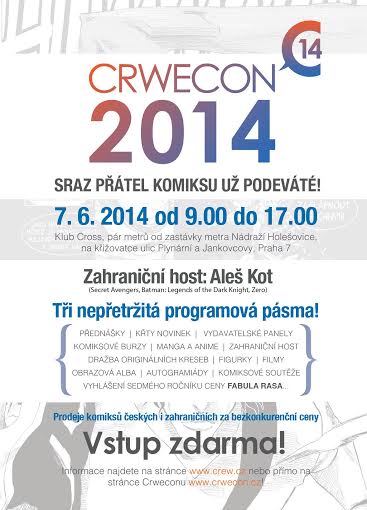 V sobotu 7. 6. 2014, v devět hodin, vypukne v pražském klubu Cross (kousek od stanice metra Nádraží Holešovice, na křižovatce ulic Plynární a Jankovcovy) už devátý ročník srazu všech komiksových fanoušků! Vypukne Crwecon.