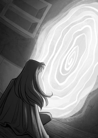 Místnost lehce potemněla a pak se rozzářila bleskem, který vyšlehl ze zpuchřelého zdiva. Pak se pomalu zešeřilo a temnotemná čerň se rozlila, až vyplnila všechny kouty.
