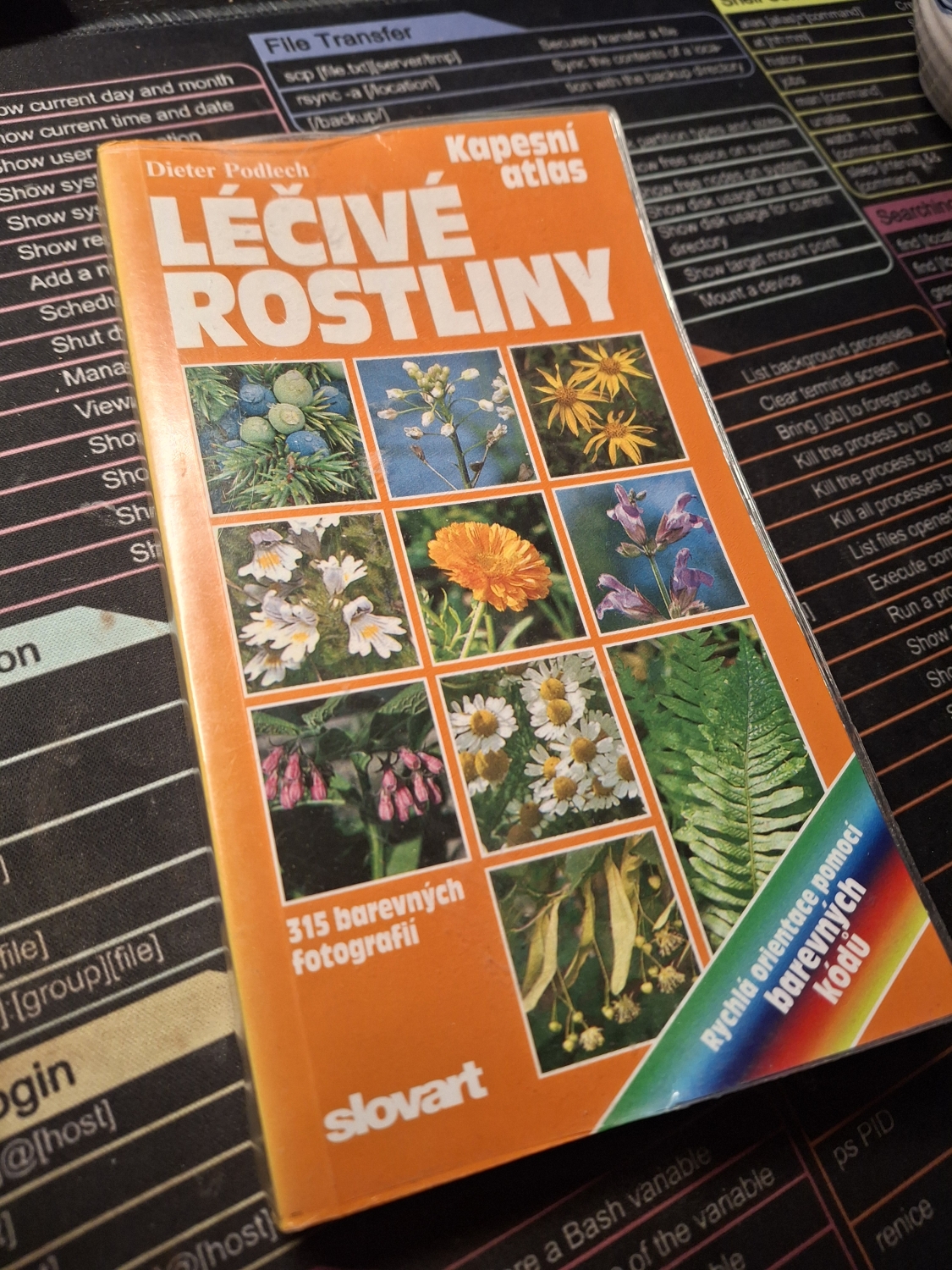 Tyhle dvě knihy pro nás můžou být opravdovou spásou. Sice nám nepomůžou moc vzdělat místní, protože ti většinu těchto rostlin už používají, ale umožní nám vytvořit si základní lékárnu pro doplnění vitamínů, proteinů a minerálů, které naše tělo potřebuje a je na ně zvyklé z moderního jídla. Některé byliny, jako třeba česnek, mohou nouzově nahradit antibiotika a antiseptika. V případě bylin a volně žijících rostlin nám navíc pomohou v léčení běžných nemocí - a to je věc, která je důležitá pro nás tak pro místní. Spoustu toho budou znát, ale ne vše. Dokonce i dnes zjišťujeme nové a nové účinky rostlin. Kapesní atlas od Dietera Podlecha jsem vybral také proto, že u každé rostliny obsahuje přesně tyto důležité informace či přímo návod na léčbu a taky pravděpodobný výskyt. Není nic trapnějšího, než když rostlina kterou hledáte v Řecku roste jen v Jižní Americe.
