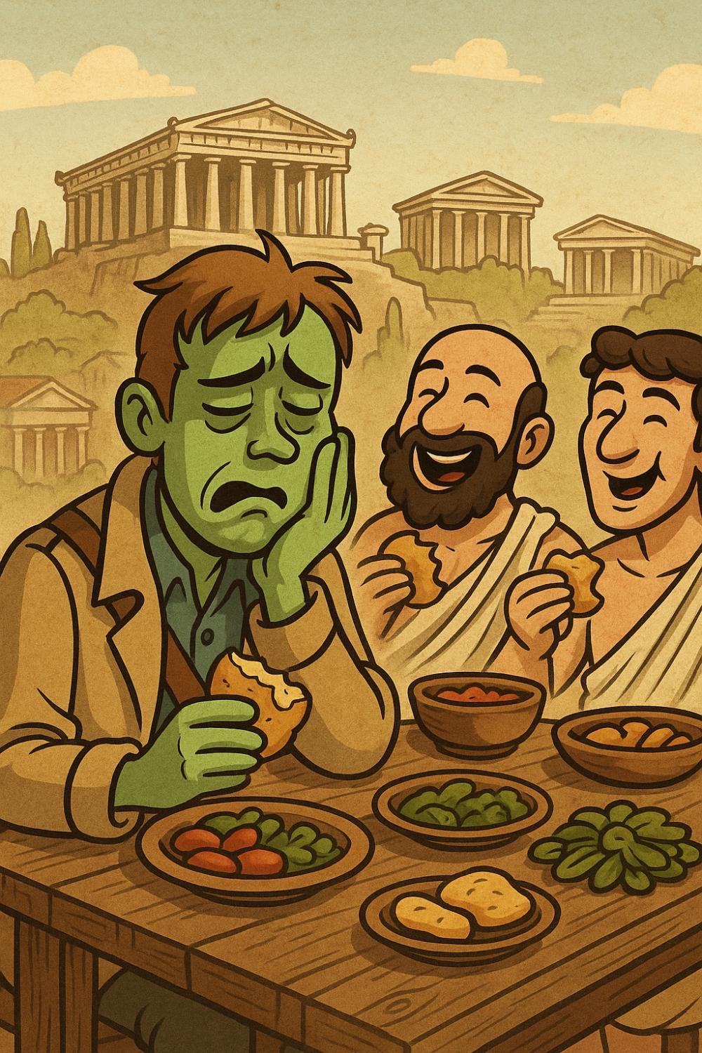 No jako ano i ne. Předchozí články samozřejmě vyřešily problémy se základní hygienou a srůstem kostí. Zachránily bezpočet vojáků po bitvách, snížily dětskou úmrtnost tak na třetinu. Jenže pak je tu naše běžná existence ve starověkém, ale klidně i středověkém světě. Moderní člověk a jeho celý mikrobiom je zvyklý na svoje století. Jsme očkovaní i přirozeně imunní proti našim virům a bakteriím. Máme odolnost proti našemu pylu, prachu, plísním. Jsme zvyklí na naše jídlo a to nejen co se týče chutí a bakterií, ale i vzhledu a konzistence. Starověká řecká varianta faraonovy pomsty je to nejmenší, co by nás mohlo čekat. Náš mikrobiom a to jak vnější ochranný, tak vnitřní (například trávicí) se totiž bude cítit po pár dnech jako panna Justina na fetišistické japonské BDSM swingers party. Tedy ne moc příjemně. A naše chuťové buňky, zuby a sliznice na tom budou velice podobně. Můžeme dopadnout jako Marťani ve Wellsově Válce světů.