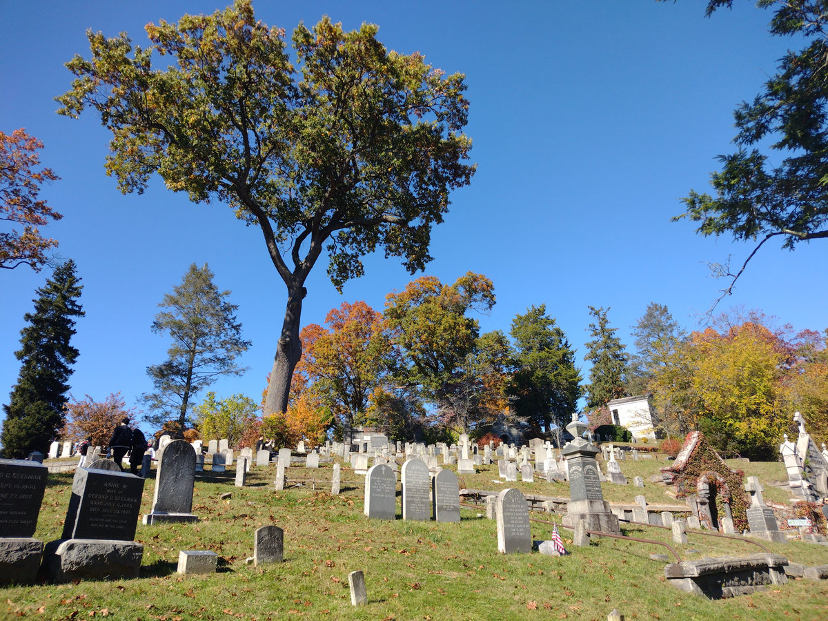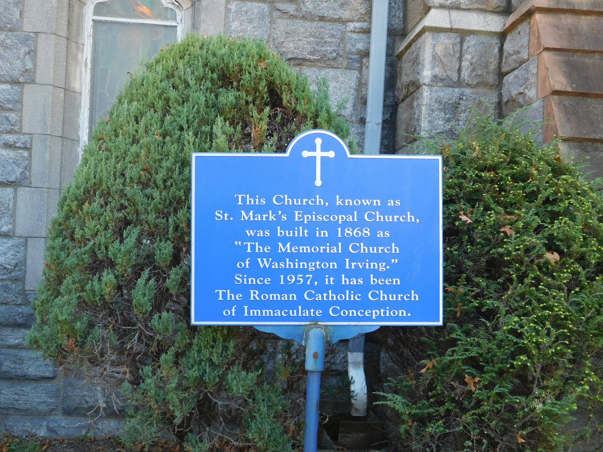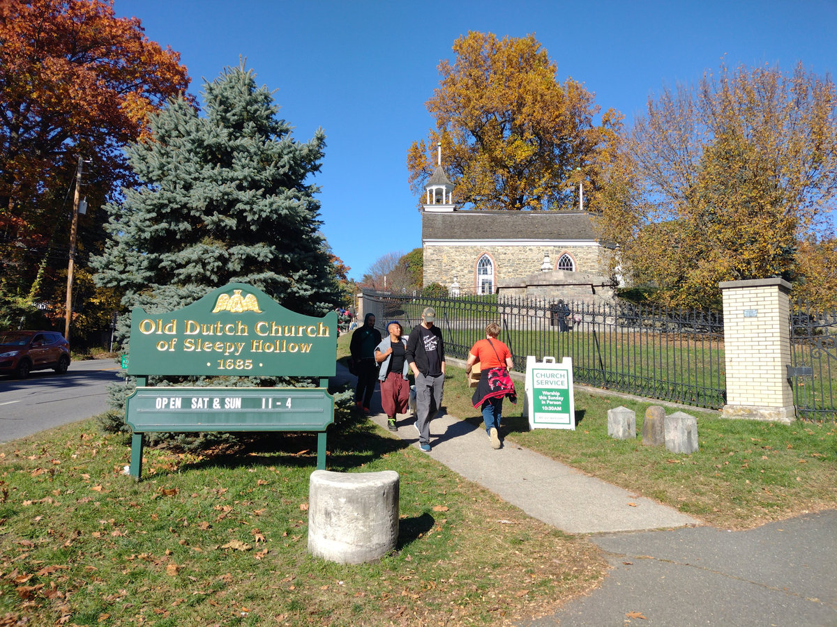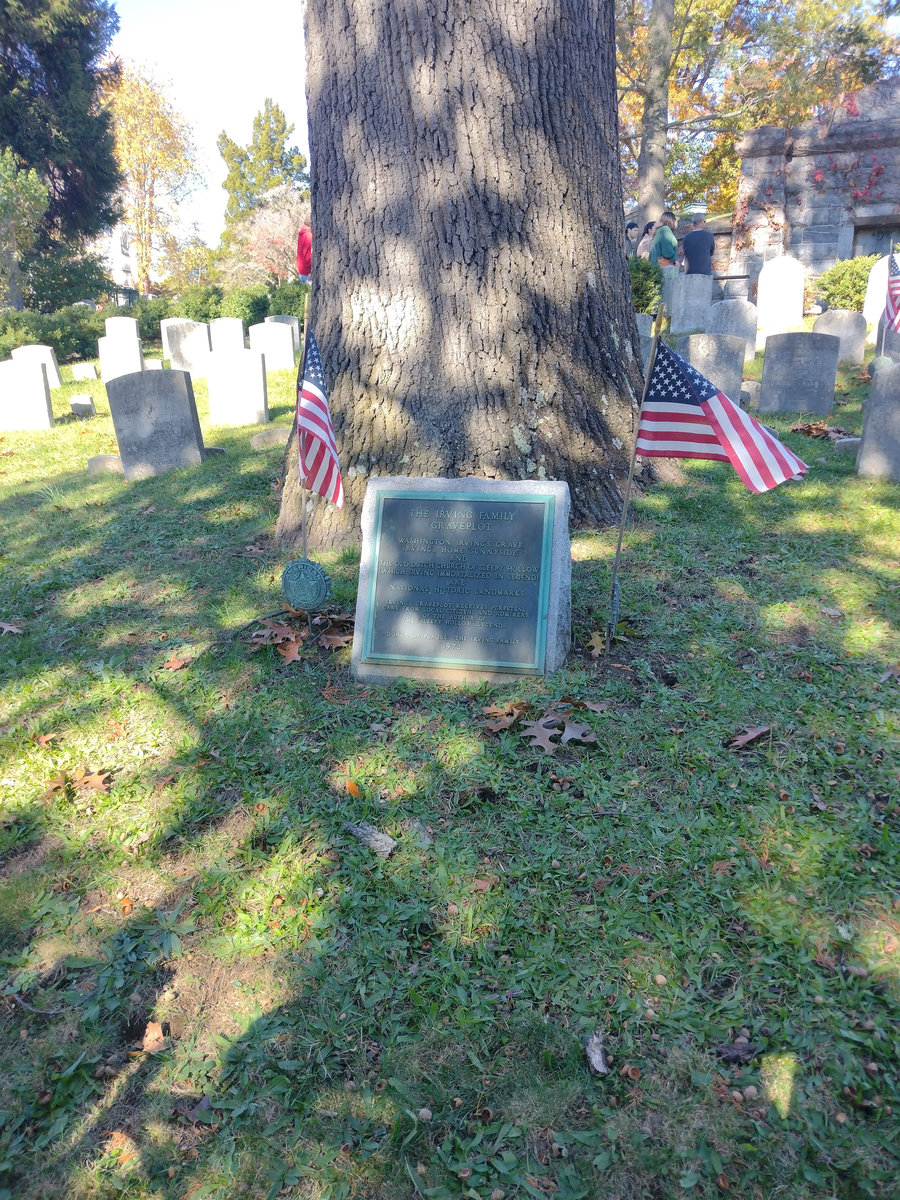North Tarrytown se na Sleepy Hollow přejmenovalo roku 1996, aby podpořilo turismus. To není jakože „Kingdom Come nám sem přitáhlo lidi, pojďme jim zakázat vjezd“ :D. S městem se přejmenovalo vše místní, od spolků přes školy, a vypadá to, že se jim to minimálně finančně vyplatilo. Město si vědomě vzalo jméno po literární legendě a stalo se tak trochu živoucím pomníkem svého nejslavnějšího příběhu. Takhle před Halloweenem je Sleepy Hollow cílem spousty lidí z okolních měst a států. Těžení hřbitova už mi přijde trochu přes čáru, ale kdo jsem, když jsem se tam byl taky podívat :D. Na druhou stranu i při turistickém využití jsou zde cedule s pravidly. Hřbitov jako takový je prostě hřbitov a nejděsivější je na něm hlavně množství pohřbených dětí v osmnáctém až devatenáctém století. Je tu i několik vojensky důležitých lidí z dob války o nezávislost a následně severu proti jihu jejichž hroby se vyznačují sochou a mimochodem i Washington Irving, autor legendy.