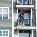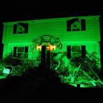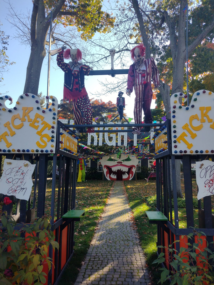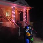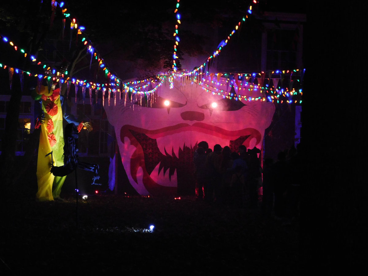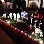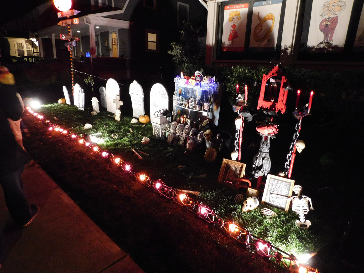 Problém tohohle zombíka byl, že to čidlo vás neregistrovalo vždy, takže jste nikdy nevěděli, jestli je nebo není zapnutý. A pak tu byly ty opravdu luxusní domy a sídla různých spolků, které se předháněly v extravaganci: kostlivci na kostlivých koních, domy s chapadly, hroby se jmény obyvatel či členů nebo obrovská klaunská hlava místo vchodu. Byly to atrakce, kde se na Halloween tvořily fronty dětí i dospělých, a my jsme se ani nesnažili dostat dovnitř, protože čekací doba k takovým dveřím byla klidně hodinová. Ani v bytových komplexech není o halloweenskou výzdobu nouze. Jasně, pronájmy bytů v Americe jsou přísné a majitelé vám obvykle nedovolí jen tak něco přibíjet nebo věšet, ale na Halloween se leccos odpustí. Některé bytové komplexy dokonce pořádají soutěže o nejhezčí balkon. U nás se třeba dalo hlasovat na stránkách komplexu a viděli jsme všechno od veselých oranžových světýlek až po dvouapůlmetrového vlkodlaka, který vypadal v noci opravdu děsivě, když jsem kolem něj venčil psa.
