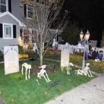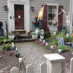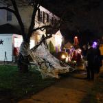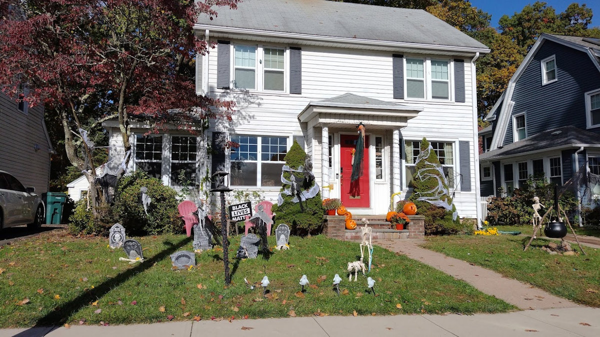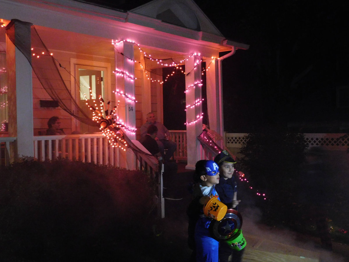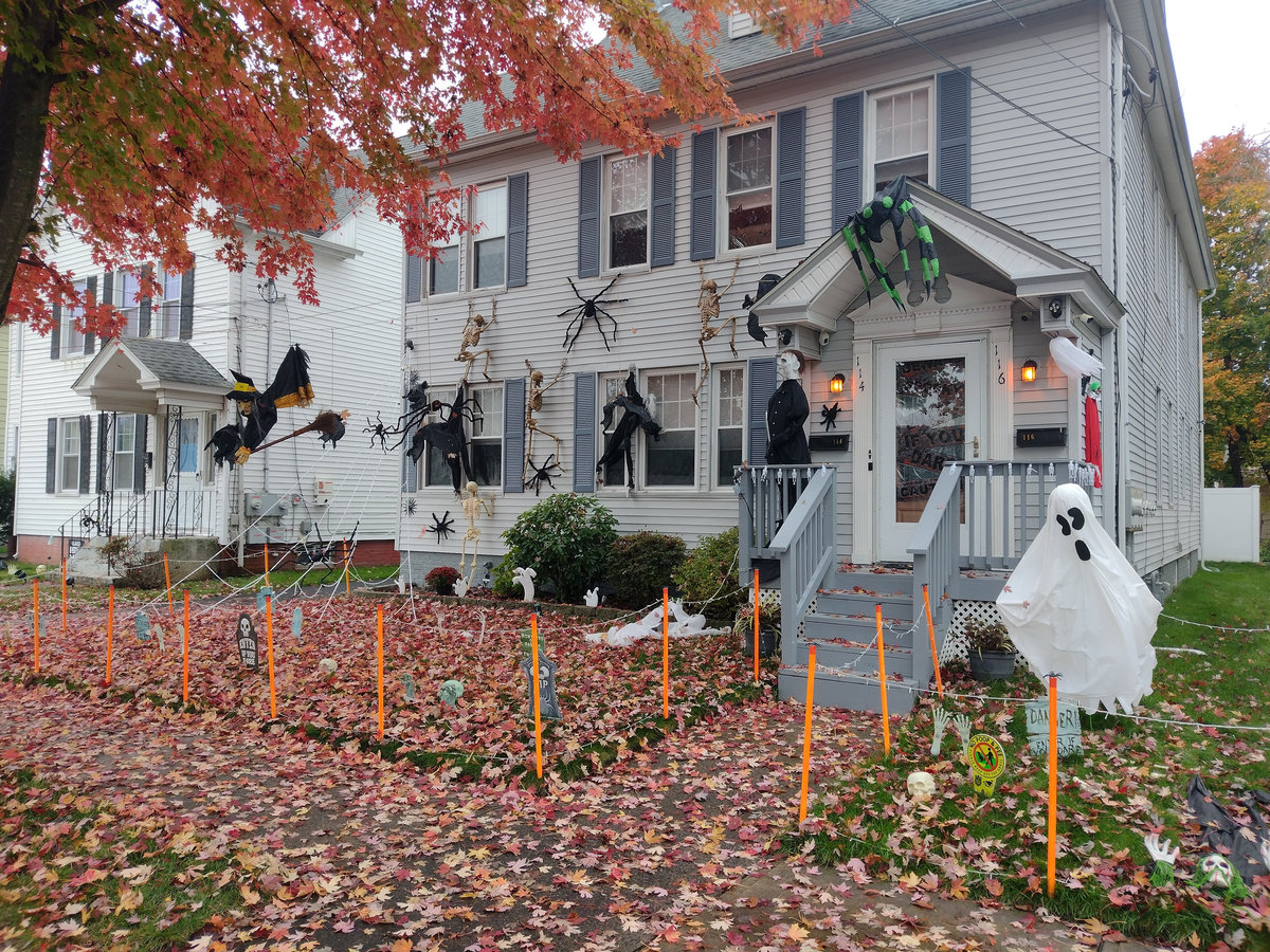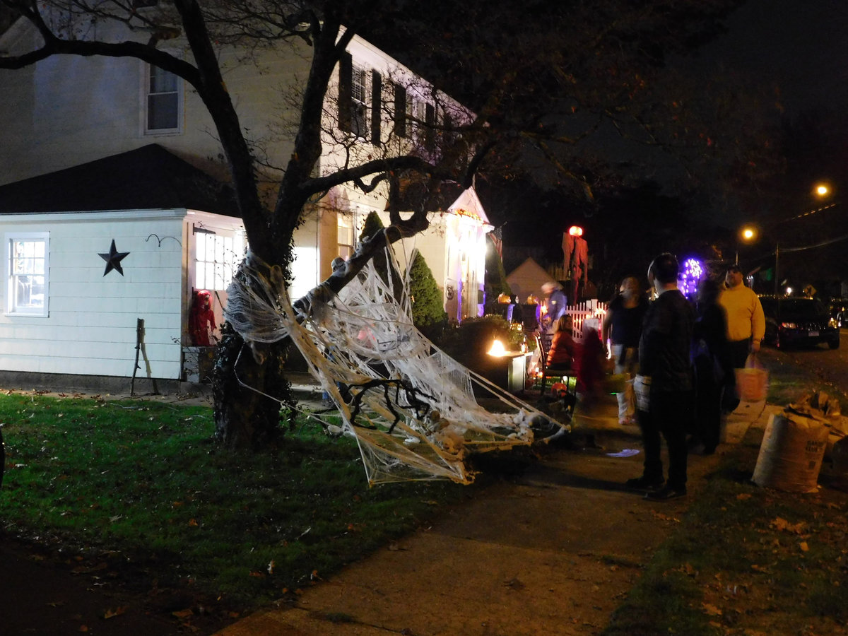 Od poloviny září se v naší čtvrti ve městě New Haven a Hamden v Nové Anglii s blížícím se Halloweenem objevovala na domech a kolem nich každým dnem nějaká nová dekorace. Jezdil jsem na nákupy na kole, protože ještě nebyla zima, a na procházky se psem, a každý den jsem hlásil ženě, kde přibylo něco nového! Občas jsem vyrážel do sousedství jen tak, právě na lov novinek. Někdy šlo o strašidelné kousky – kostry, náhrobky, pavouky a pavučiny, které pokrývaly keře a stromy, jindy naopak veselá barevná výzdoba. (Všimněte si že nikde nepíšu vkusná :D) Pavučiny se objevily snad na devadesáti procentech všech dekorací, zřejmě proto, že jsou levné a efektivní, a pokrývaly ve velkém keře, stromy i zdi domů. Strašidelnost obrovských pavouků a množství kostlivců občas narušil třeba strom ověšený barevnými plastovými dýněmi, které v noci svítily, nebo jasně zářivé oranžové dekorace s nápisy Spooky, Boo, Trick or Treat či Happy Halloween. Nezaostal ani kostel, jenž zdobilo pár halloweenských detailů a dáně před vchodem. Ano, i kostel tu mohl být tematicky ozdobený, takže náš moravský farář, který dětem rozkopával dýně jako dílo Satanovo, by tu byl asi dost v šoku.