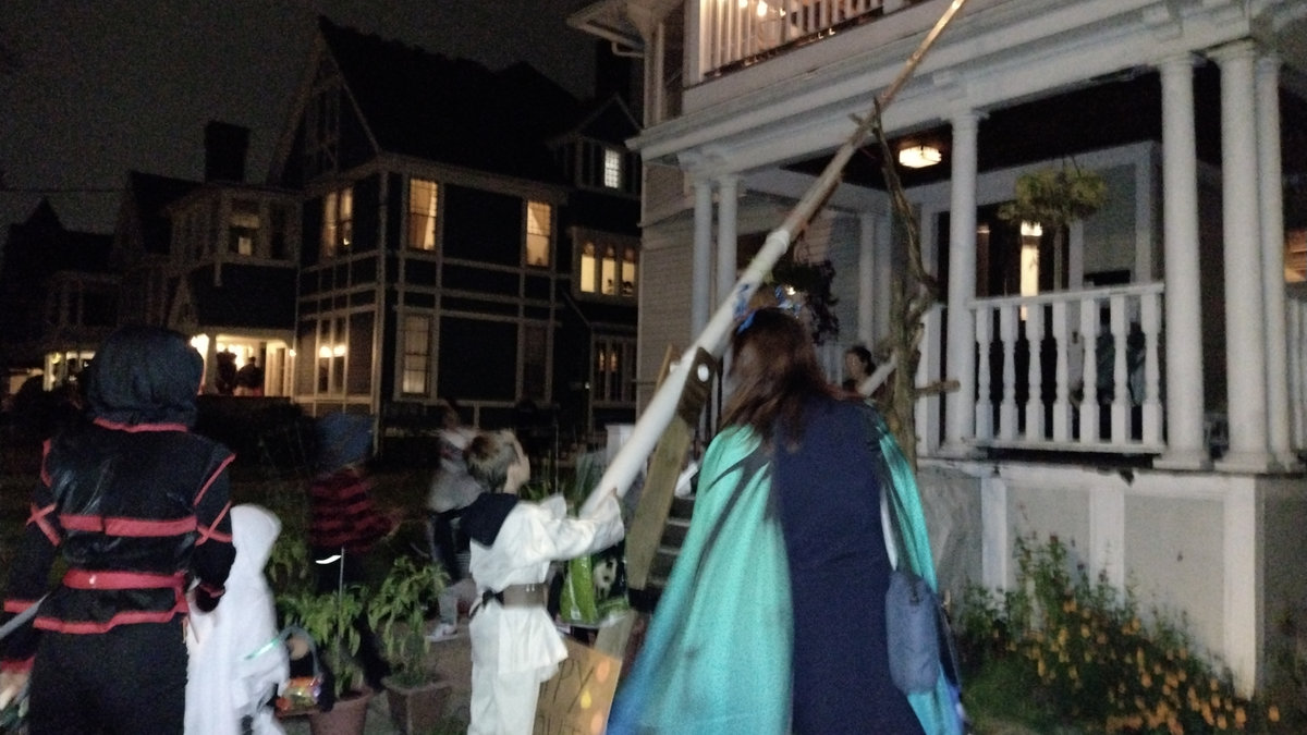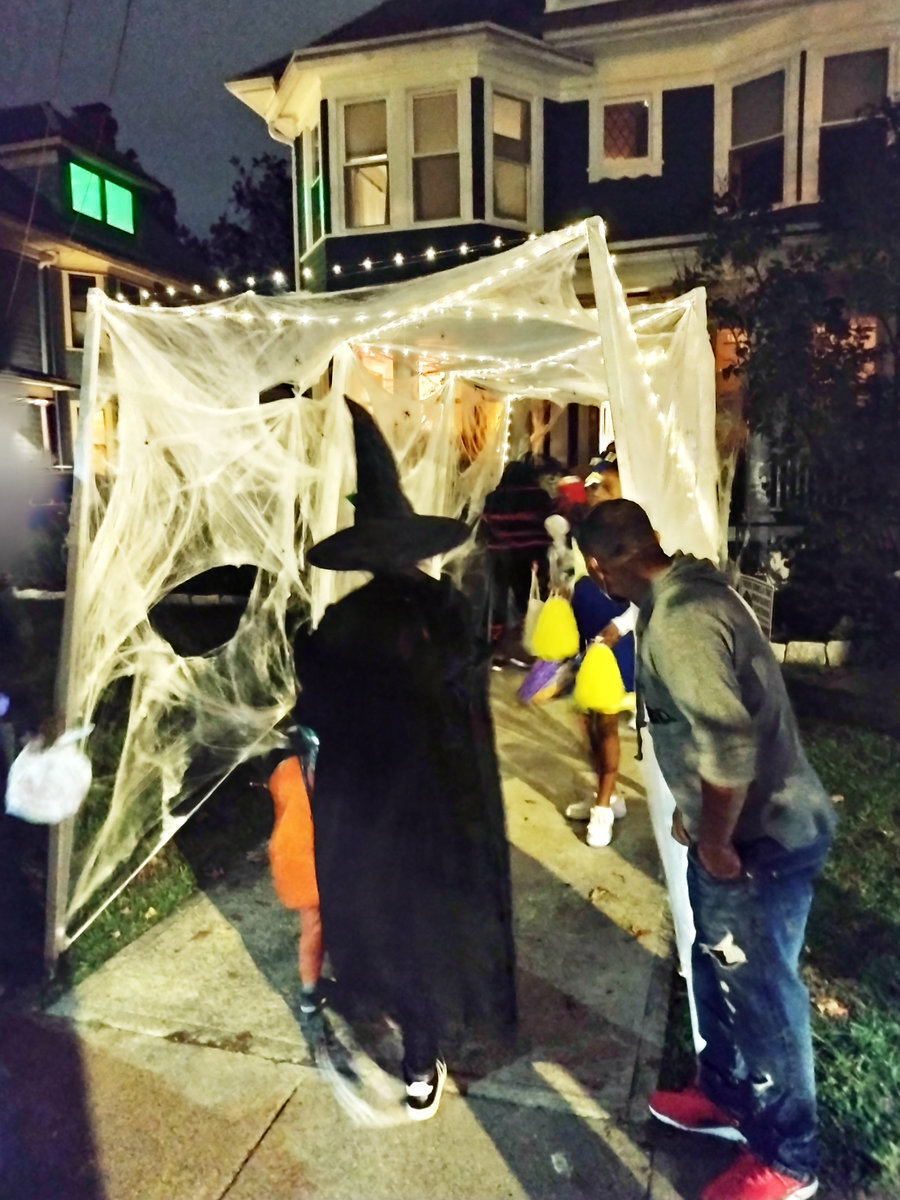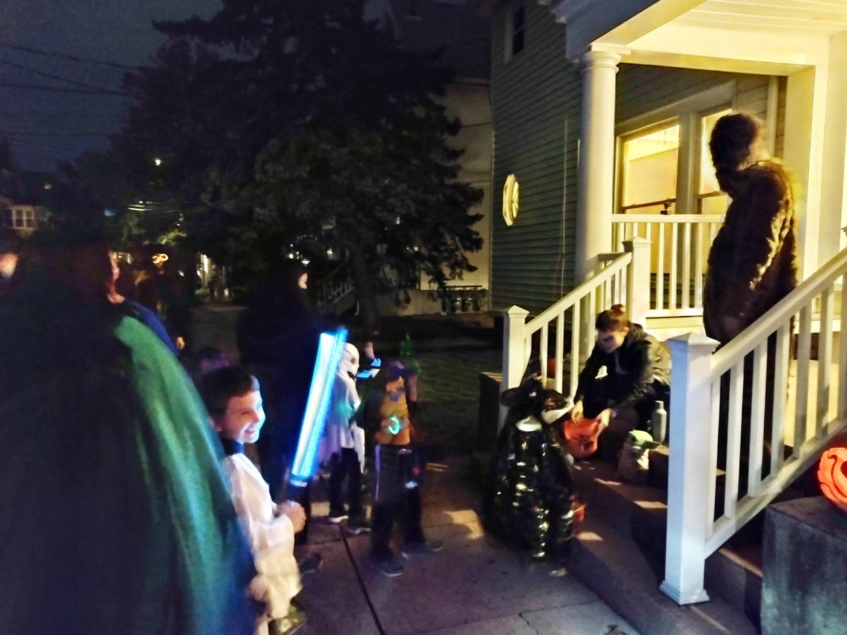 Když pak přijde ta halloweenská noc, většinou se s koledováním nechodí nikde daleko. Držíte se jedné čtvrti, pár známých ulic. My jsme měli možnost zažít Halloween na dvou místech: v naší blízké čtvrti Whitneyville a pak u přátel - Němky a Slováka :D žijících tehdy v East Rocku, kteří nás do téhle tradice zasvětili. Stejně tak jsme s nimi trávili třeba Díkuvzdání a obecně měli několik rad, které nám přišly vhod. Halloween není jen o strašidlech. Je to jako noční Comic-Con pod širým nebem. Kromě čarodějnic a duchů potkáte všechny možné hrdiny z Marvelu, Jedie, mimozemšťany nebo partičku z Pána prstenů. Lidé to berou jako velkou pouliční párty. Někteří mají prostě vlastní zábavu u svého domu, grilují v kostýmech a jen občas pozdraví kolemjdoucí a pokynou k bedničce s bonbony. Jiní naopak vytvářejí malé divadlo pro všechny, kdo projdou kolem. Třeba dům s obřími pavučinami a chodbou jako v doupěti Oduly a na konci cesty na vás čeká Gandalf, který vám podá sladkosti. Protože jsme první Halloween zažili v době vrcholícího covidu, byl i přes prakticky stoprocentní proočkovanost přece jen slabší. Ale i tak byli lidé vynalézaví, někteří posílali bonbony dětem po rourách z okna :D. Děti to braly spíš jako ozvláštnění. Přesto jsme viděli i tematické scénky s postavami ze Star Wars - Chewbaccu, Hana Sola, Darth Vadera a další, kteří se s dětmi naopak fotili a pózovali. Všichni, i ti, kdo se normálně moc nebaví, měli připravené pro děti nějaké drobnosti. I většinou stranící se staříci buď stáli ve dveřích, nebo seděli v houpacích křeslech na verandách a užívali si dětskou přítomnost. A množství malých sladkostí, to je ta druhá stránka Halloweenu. Komerční, plná barevných balíčků, které před svátkem zaplaví každý obchod.