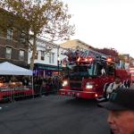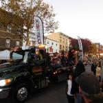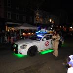 Samotný průvod byl vlastně takovou velkou přehlídkou místní komunity. Na začátku průvodu projel sám bezhlavý jezdec ale pak už nastoupily nejpočetnější pěší skupiny tvořené různými spolky a zájmovými sdruženími, pak přicházely hudební a taneční školy. A nebyly to jen školy přímo ze Sleepy Hollow, přece jen je to docela malé město, ale i z okolí, dokonce i z New Yorku. Sleepy Hollow Middle School samozřejmě nesměla chybět a musím říct, že mají překvapivě velký orchestr. To je ostatně věc, která mě v Americe vždycky překvapovala - i úplně obyčejná střední nebo základní škola tu má kapelu o desítkách hráčů. Někde mají třeba dvacet saxofonistů. Dvacet! Na střední škole. Je to tam opravdu podporované a je to vidět. Jakmile prošly školy a dobrovolníci, přišla na řadu "firemní" část. Alegorické vozy, masky, tematické skupiny. Každý vůz měl zástup dětí a dospělých, kteří šli za ním, a člověk hned věděl, jakou organizaci nebo klub reprezentují. Hodně lidí mělo kostýmy inspirované filmem Beetlejuice. Ten byl vyloženě všude a to bylo ještě před vydáním dvojky. Samozřejmě nechyběla ani Addamsova rodina, a to ještě předtím, než vyletěla Wednesday na Netflixu, takže tradice je opravdu silná. Pak projel vůz s kapelou, Sleepy Hollow alegorický valník tažený Fordem F-350, za ním ohnivý motocykl s Ghost Riderem, pak zase alegorická scéna z Alenky v říši divů, další hudební skupina, další strašidelný vůz… a celé to působilo jako taková malá komunitní verze Macy’s Parade (kterou mimochodem asi taky zmíním ve vánočním dílu :D). A aby těch filmových referencí nebylo málo, místní policisté si vyzdobili služební auto jako Ghostbusters. Nesměly chybět ani další městské vozy, jako hasiči.