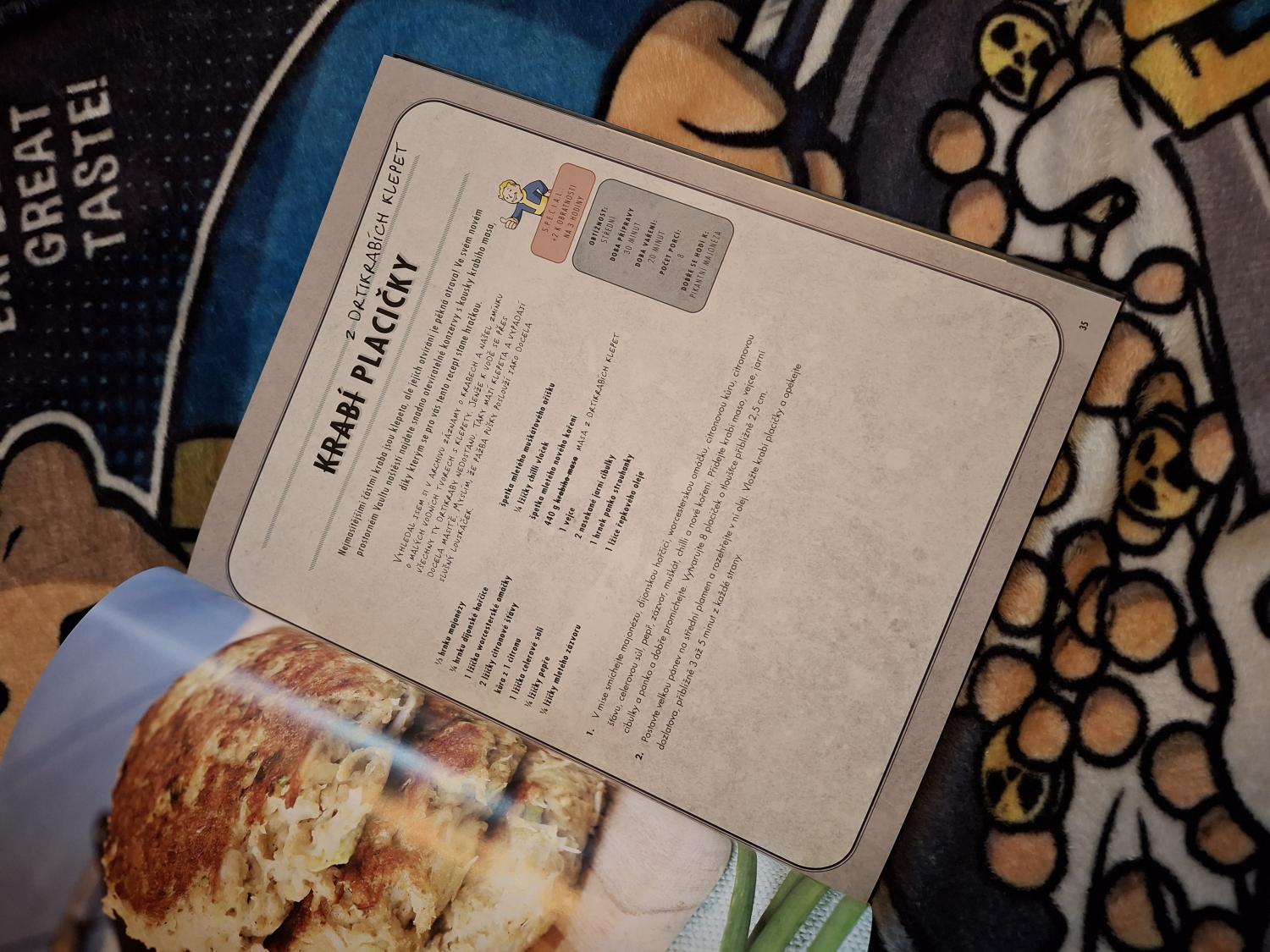 Jenže pak přijde moment, kdy chcete něco uvařit, a zjistíte, že jste pořád v Americe. Hrnek zůstává hrnkem, lžíce lžící a vy si to musíte přeložit znovu, tentokrát do reality vlastní kuchyně. Přitom by stačilo hrozně málo. Ten úvod tam už je a je docela fajn - Vault-Tec, přežití, sběr surovin v pustině. O to víc zamrzí, že zde není třeba jeden odstavec navíc. Něco ve stylu „cup je zhruba 240 ml, lžíce odpovídá tomuhle a mimochodem, karamelová omáčka u nás nebude úplně to samé jako v USA“. Nic velkého, jen taková drobná berlička. Takhle máte pocit, že knížka vás sice vtáhne do světa, ale u vaření vás nechá trochu ve štychu.