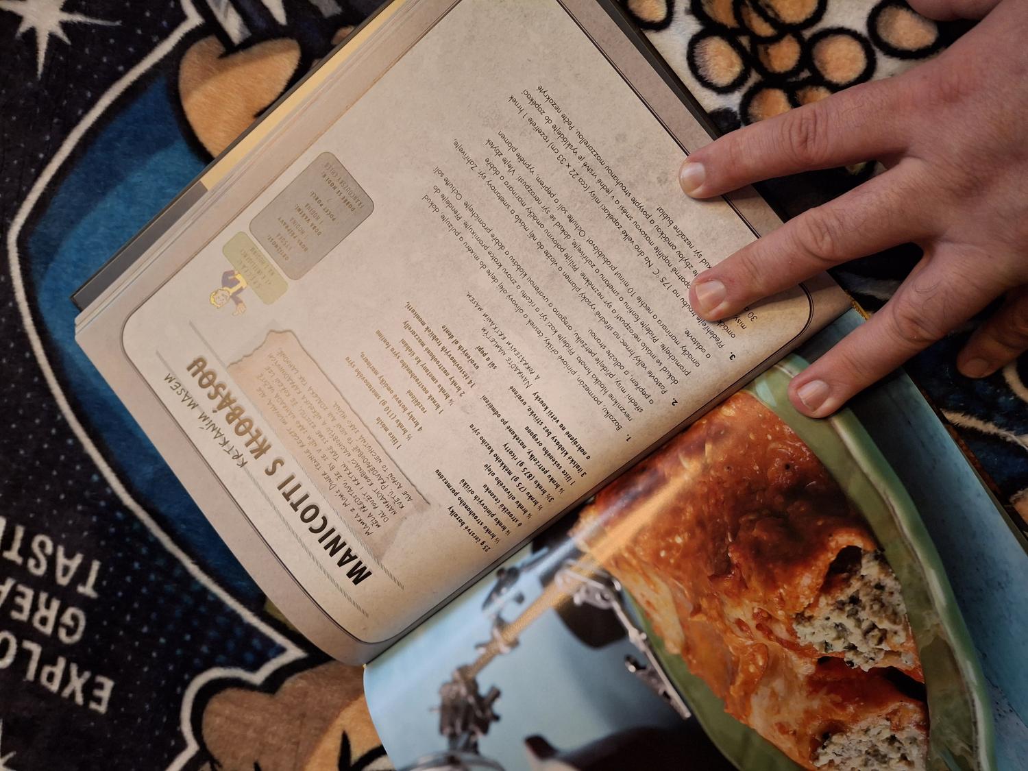 A je to trochu škoda, protože jinak je překlad fakt dobrý. Názvy dávají smysl, „dušený páračí steak“ nebo „Xanderová miso polévka“ fungují přesně tak, jak mají. Každý recept má nějakou poznámku, která ho zasazuje do světa Falloutu, řeší se tam, co by po válce šlo nebo nešlo sehnat (ve světě Falloutu, v našem bychom za stejné situaci umřeli hlady) a celé to drží pohromadě jako taková stylová příručka z pustiny.