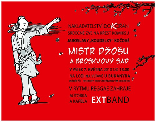 A nakonec ještě jedna domácí komiksová pozvánka: o komiksové prvotině Jaroslavy Kočové Mistr Džošu a broskvový sad jsem tu psal před dvěma týdny. Komiks plný zenových hádanek a mouder pokřtí 7. května v 18 hodin na lodi U Bukanýra v Praze.