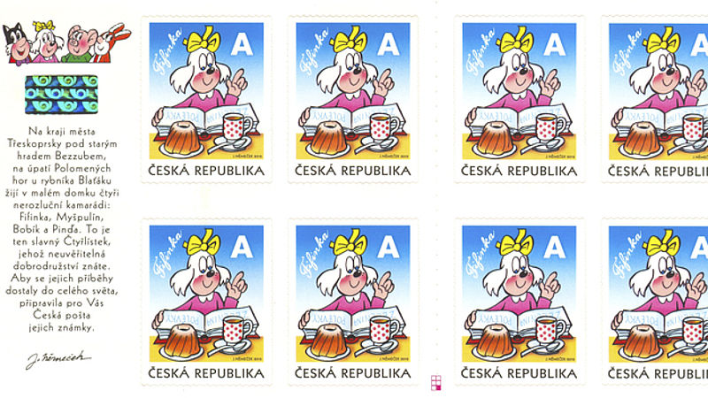 V době, kdy děti už ani neví, k čemu by jim mohl být užitečný klasický dopis, se Česká pošta pokouší zaujmout potencionální malé filatelisty „čtyřlístkovými“ poštovními známkami. Podle etikety dostala přednost žena (fena) – jako první se na nových známkách 28. dubna objevila Fifinka nad kuchařskou knihou, čajem a bábovkou. Během letošního a příštího roku ji budou následovat i Myšpulín, Bobík a Pinďa. Revolučnější než komiksová figurka na poštovní známce je jistě nahrazení nominální hodnoty písmenem a taky konec olizování – známky jsou samolepící.