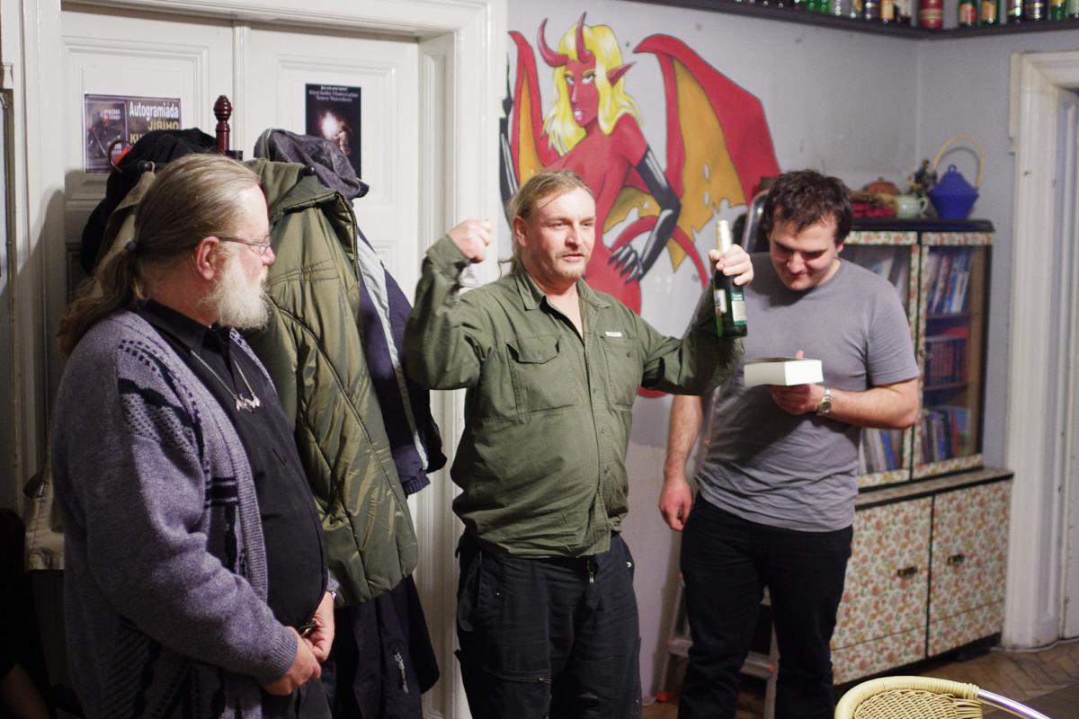 Knihu s autorem pokřtili nakladatel Michael Bronec a Leonard Medek tentokrát netradičně v roli ilustrátora.Tomáš se podepsal do výtisků,