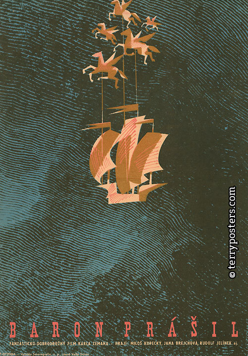 Třetím a podle mnohých názorů i nejlepším ze šestice jeho kombinovaných snímků se pak stal Baron Prášil (1961) podle scénáře básníka Josefa Kainara. Rytiny z verneovek jsou nahrazeny skvělejšími rytinami Gustava Doré (1832-1883) a film vyniká malířským využitím barev. Bagdád tone v magické modři a pronikavě ho prozařuje žluť věží sultánova paláce ozářených měsícem. Jako hudební skladatel se k tomu panoramatu po zásluze vrací Zdeněk Liška a Brdečka aspoň jako autor komentáře. Karel Zeman ovšem také poprvé získal a využil známé tváře filmového světa, i když si současně uvědomme, že ještě nebyly známé jako později. O dobré herce nicméně šlo. Titulní roli pojal Miloš Kopecký výtečně a princeznou Biancou se stala teprve jednadvacetiletá Jana Brejchová. V další hlavní roli figuruje šestadvacetiletý Rudolf Jelínek, Cyranem na Měsíci se stal Karel Hoger a kapitánem lodi sám Jan Werich. Poměrně plachý Karel Zeman se ho prý zpočátku bál. Sultánem je Rudolf Hrušínský, pevnosti velí sám Eduard Kohout, admirálem je Bohuš Záhorský, jedním z důstojníků Karel Effa, trosečníkem pak Josef Hlinomaz a Michela Ardana alias hrdinu verneovky Se Země na Měsíc (1865-1870) hraje budoucí Tau Otto Šimánek. Po jeho boku vystupují i kapitán Nicholl a předseda dělového klubu Barbicane. Z Měsíce se však čile přeneseme na Zem a zvláště útroby velryby či let na dělové kouli zůstávají nezapomenutelnými. Film Baron prášil končí pak jako sen a opět na Luně, kam se hrdinové nechají vymrštit výbuchem.