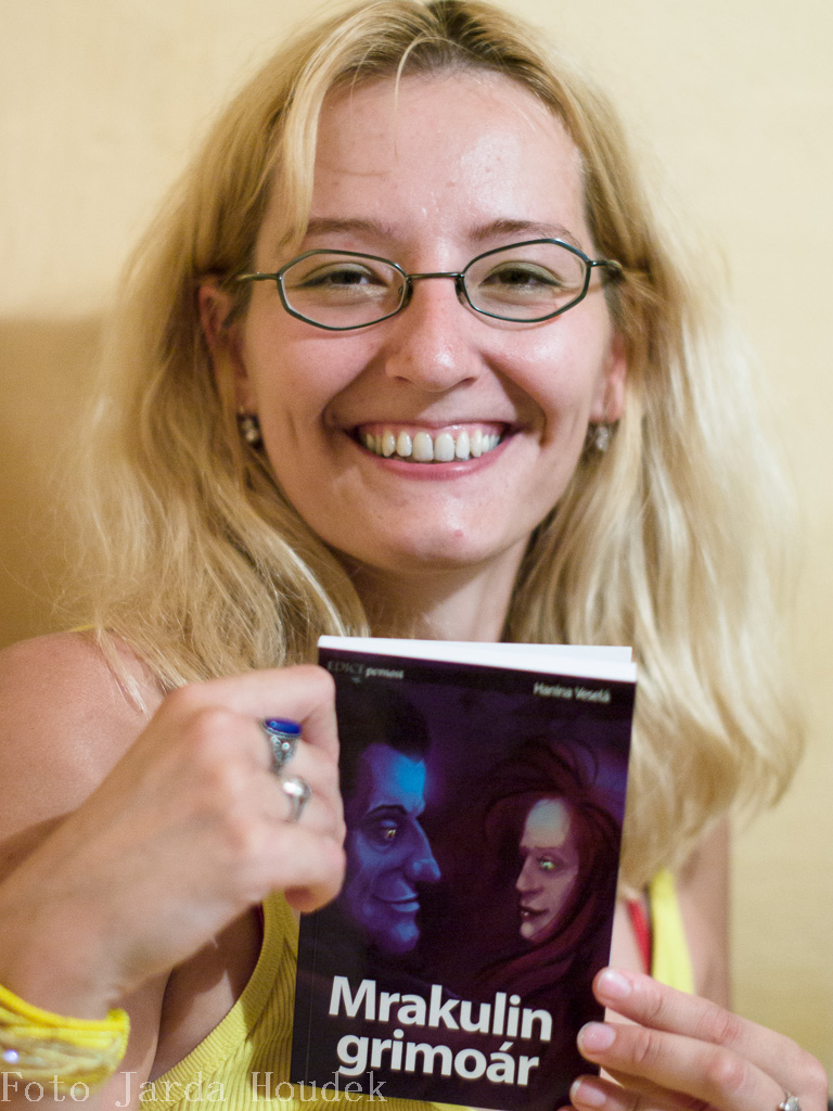To si pamatuju naprosto přesně: Ta zatracená obálka! I když jsem tomu nechtěla věřit, v tištěném provedení vypadala ještě hůř než na obrazovce monitoru. Jako správný „autor-profesionál teoretik“ jsem samozřejmě navenek nedala nic znát a na fotkách se se svou prvotinou se usmívám. Čímž jsem vlastně odpověděla i na druhou otázku. Ano, změnila bych obálku a také jsem ji na výslovné (a rozumné) přání nakladatele změnila. Mrakulin Grimoár lze sehnat jako e-book již s novou obálkou. Ani ta sice není ideální, ale na druhou stranu: Kolik autorů má tu drzost vtisknout na své dílo obrázek, který pochází z jejich vlastního foťáku? Také jsem pro elektronické vydání text trochu učesala. Přece jen je to pět let stará kniha a teď už bych většinu z toho napsala úplně jinak.
