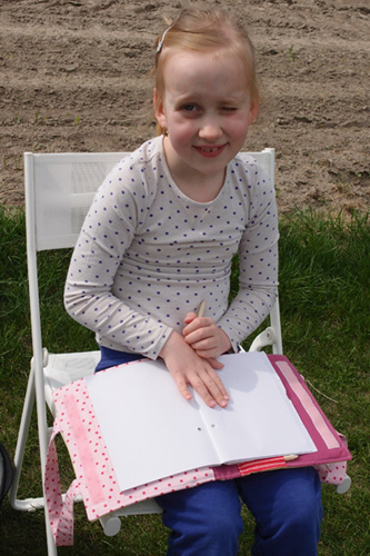 Na úplný závěr důkaz, že jsem si to nestavěl pro sebe:-). Jak můžete vidět na poslední fotce, pokud se dobře vybavíte (jen jsme tedy nechali doma stoleček, za což jsem dostal co proto:-)), vydrží děti na letišti i v čase, kdy létá někdo jiný. Navíc, dotazy typu:“co mám nakreslit“ ve chvíli, kdy bojujete s větrem, dokážou člověka slušně zocelit:-).