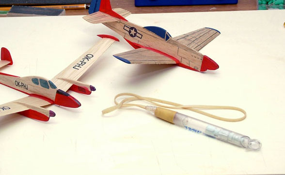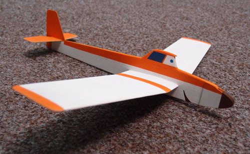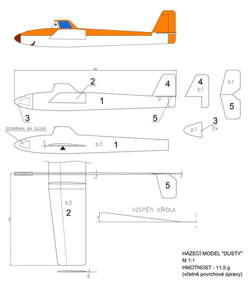 Fáze 4: Můžete si všimnout, že pod čumákem se nám objevil takový kolíček – ten slouží k vystřelování modelu gumou. Na výkrese není zakreslen, ale myslím, že ho snadno každý dodělá. Je vyrobený z bambusové špejle.