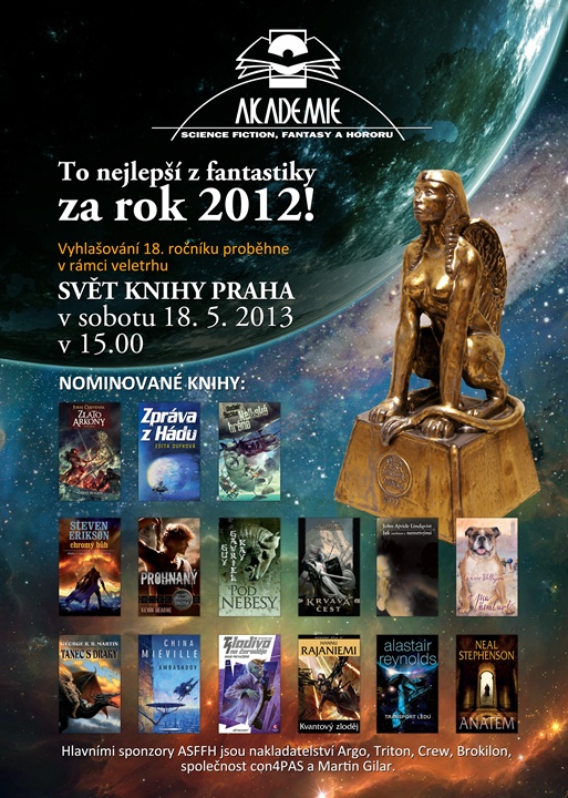 V sobotu 18. 5. od 15 hodin v rámci pražského knižního veletrhu Svět knihy proběhne udělování Cen Akademie sci-fi, fantasy a hororu za rok 2012. Pojďme si po nominacích prvního kola anketou připomenout, jak tipovali nakladatelé samotní...