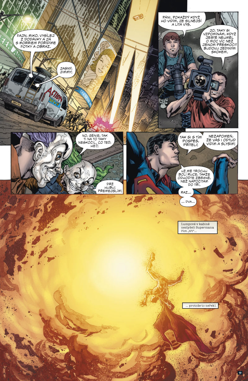 Boje se záporáky by ale samy o sobě nestačily na příběh o šesti dějstvích, a tak tu máme ještě pohled do zákulisí moderního Daily Planet. Lois se musí postarat o exkluzivitu, kterou představují Supermanovy bitvy, a v mezičase se starat o čím dál více odtažitého Clarka. Na tom by nebylo nic špatného, kdyby mediální příběhová linie nedostávala víc prostoru, než postava samotného Supermana. Na média a hrátky s elektronikou je kladen veliký důraz a plky za oponou jsou všudypřítomné.