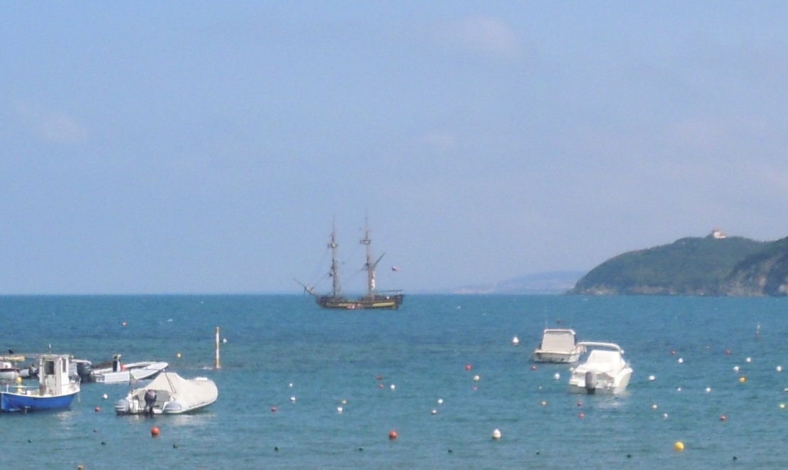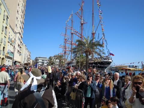 Pondělní dopoledne trávíme různě, dobíráme vodu a naftu, další skupina vyráží na nákup zásob pro kuchyni, k nátěrům jsou připravovány vyřezávané dekorace, určené na vylepšení vzhledu lodi. Směna, která má volno, dostává do oběda vycházku, pár lidí se zkouší koupat. Po poledni vyplouváme, za Cap Corso na nás má přijít bouřka. Mimo dohled přístavu pak čekáme na opozdilce, kteří z neznalosti místních poměrů uvázli na výletě kdesi v terénu, a na cestu se vydáváme teprve kolem třetí. Rychle necháváme Korsiku za zády. Západ Slunce je nádherný a nic nevěští změnu. V noci se rozfoukává na 37 uzlů a loď se mění v rozdováděnou lochnesku, což se dá přetrpět uvnitř vleže, nebo venku na vzduchu. Chutná večeře mizí dílem v palubním hajzlíku a dílem přes palubu, následuje ji včerejší oběd a nakonec i snídaně. Cestovní problémy kněžky v „Putování Měsíčního Stínu“ hned dostávají jasné, byť poněkud eklhaft barvy. Pak si odkroutím své hodiny u kormidla a po skončení směny padnu na hubu na svůj kavalec. K ránu vítr slábne. Úterý trávíme na širém moři za studeného slunečného počasí a dáváme se po „veselé“ noci do kupy. Většina posádky barvou i pohyby připomíná partu zombíků. Francouzské pobřeží se blíží, svištíme po větru a video (viz youtube, uživatel František Šefl) možná někoho dožene k mořské nemoci. Středa ráno nás již zastihla v nějaké zátoce za Toulonem, odkud po snídani vyrážíme dál podél pobřeží. Míjíme Marseille, přičemž někteří sečtělejší členové posádky citují místně příslušné pasáže z „Nočního klubu“ od Kulhánka. Večer kotvíme v jakémsi kanálu v ústí Rhóny, okolí silně připomíná Vernovo „Ocelové město“. Ve čtvrtek ráno se šineme v dohledu pobřeží dál a kotvu vyhazujeme po setmění nedaleko Montpellier. Cestou dáváme do pucu loď i sebe. Do Séte – cíle naší cesty – zbývají necelé tři hodiny plavby. V pátek ráno se loď i posádka šperkují před akcí a následně zvedáme kotvy. V Séte máme v jedenáct hodin menším představením zahájit festival „Escale a Séte 2014“. Jsme před přístavem včas, ale organizace je typicky francouzská, takže křižujeme a čekáme na pořadatele. Vplouváme do přístavu, v centrálním bazénu pálíme dvě boční salvy na ruské barky Kruzenštern a Sedov, načež se přesouváme do vedlejšího kanálu na přidělené kotviště. Pořadatelé nám razí cestu v záplavě drobných plavidel, jejich posádky místo řízení fotí a riskují seznámení s naším předním vazem. Před jedním takovým se našemu kapitánovi podařilo zastavit doslova na šířku dlaně. Na nábřeží okounějí davy lidí a první oficiální delegace z jiných zúčastněných plachetnic. Nastává nepřetržitá čtyřdenní spratkárna (opět ji najdete na youtube, ideálně pod názvem festivalu) ze které nás vysvobodí až odplutí (opět s kanonádou) v pondělí o druhé hodině odpolední.