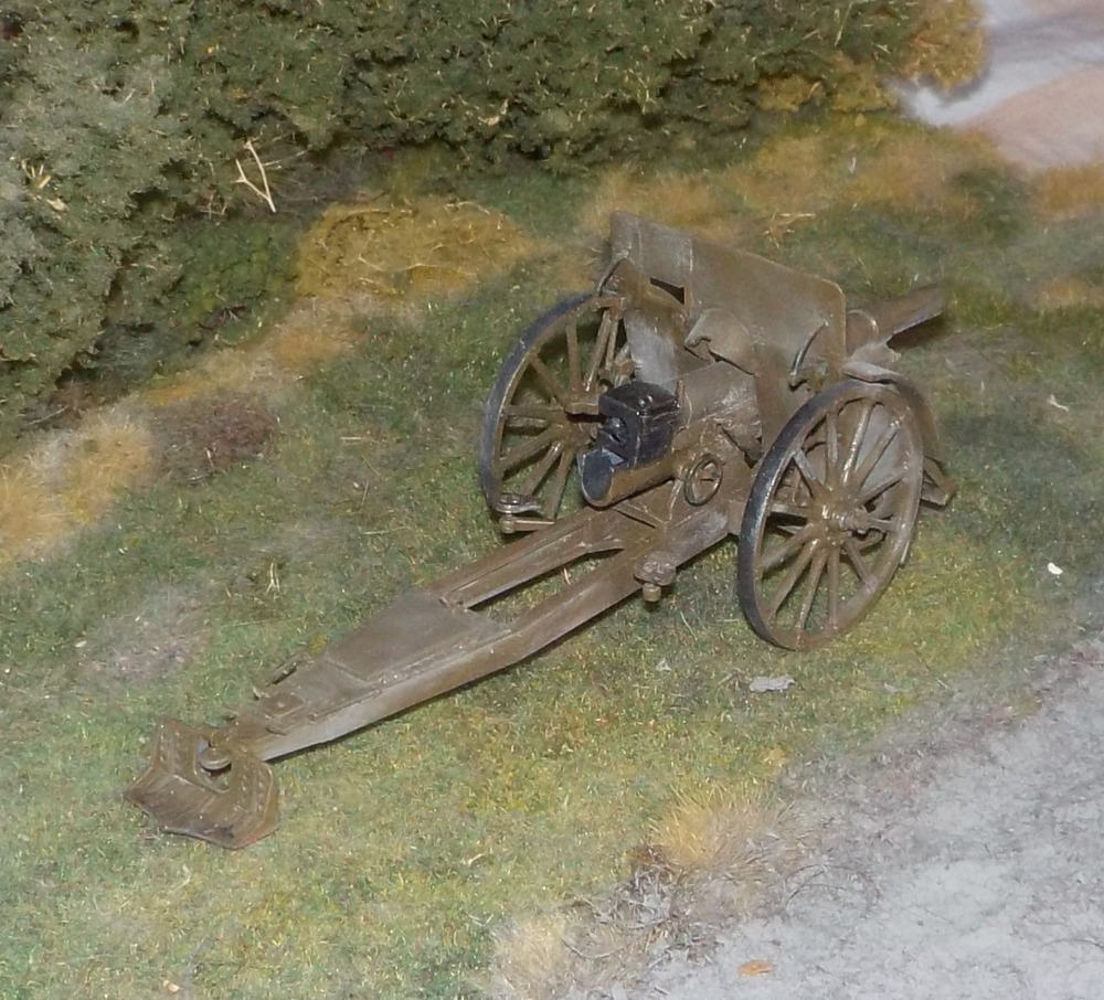 Vlastní stavebnice je shortrun, doplněný luxusní soustruženou duralovou hlavní, která má dokonce naznačené drážkování. Kupa výlisků vypadá na první pohled dobře, ale kola mají drobné, leč nepříjemné otřepy a dokonce pod nálitky dutiny. Řada masivnějších dílů (mj. závěrový blok, „kliky“ podvozku) se honosí propadlinami. Při porovnání výlisků a fotografiemi zjistíme, že pár věcí chybí a působí to dojmem, že výrobce počítal s upgradovou sadou z leptů a odlitků, na kterou ale zatím nedošlo. Stavebnice zcela postrádá zaměřovač (konzola na něj tu ale je), chybí krytky průzorů ve štítu, manipulační páka rydla a pak řada drobných detailů na závěru, štítu a opěrkách pro nohy vezených dělostřelců. Ty byly u předlohy sklopné, na modelu na tuto skutečnost upozorňuje jen náznak ve formě nalisovaného šroubu.