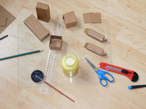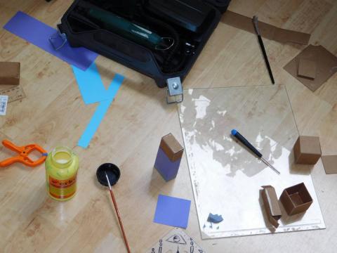 3) pravítka, nůžky, nůž na koberce, lepidlo (Herkules), štětec na lepidlo, tužky, řezací podložku (mám sklo ze starého skeneru), (mikrovrtačku - nepovinná).
