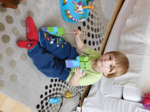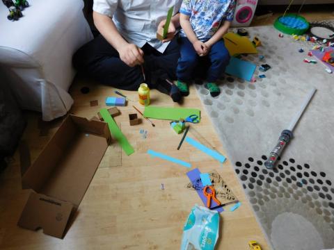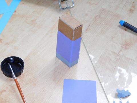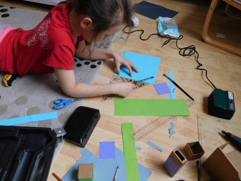 Nalepování barevných pruhů na tvary už jsem si vzal na starost zase já. Měl jsem ale pomocníka :)