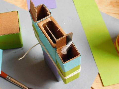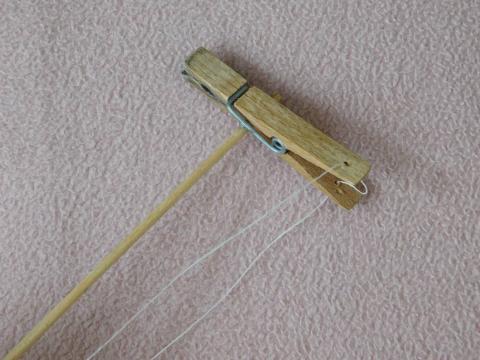 4) silná nit (režná), dřevěný kolík na prádlo, špejle, provázek (sající lepidlo, tj. ne umělý).