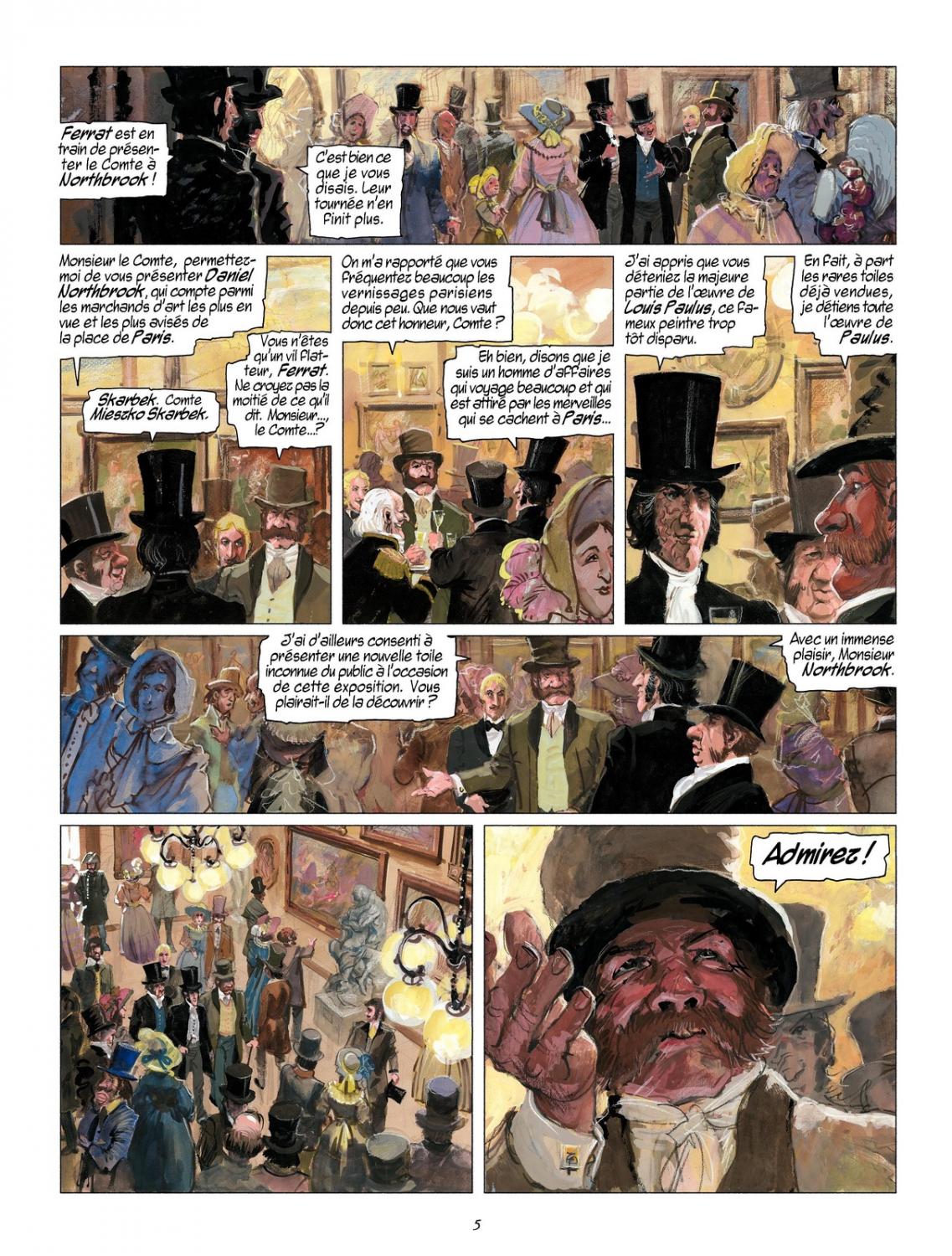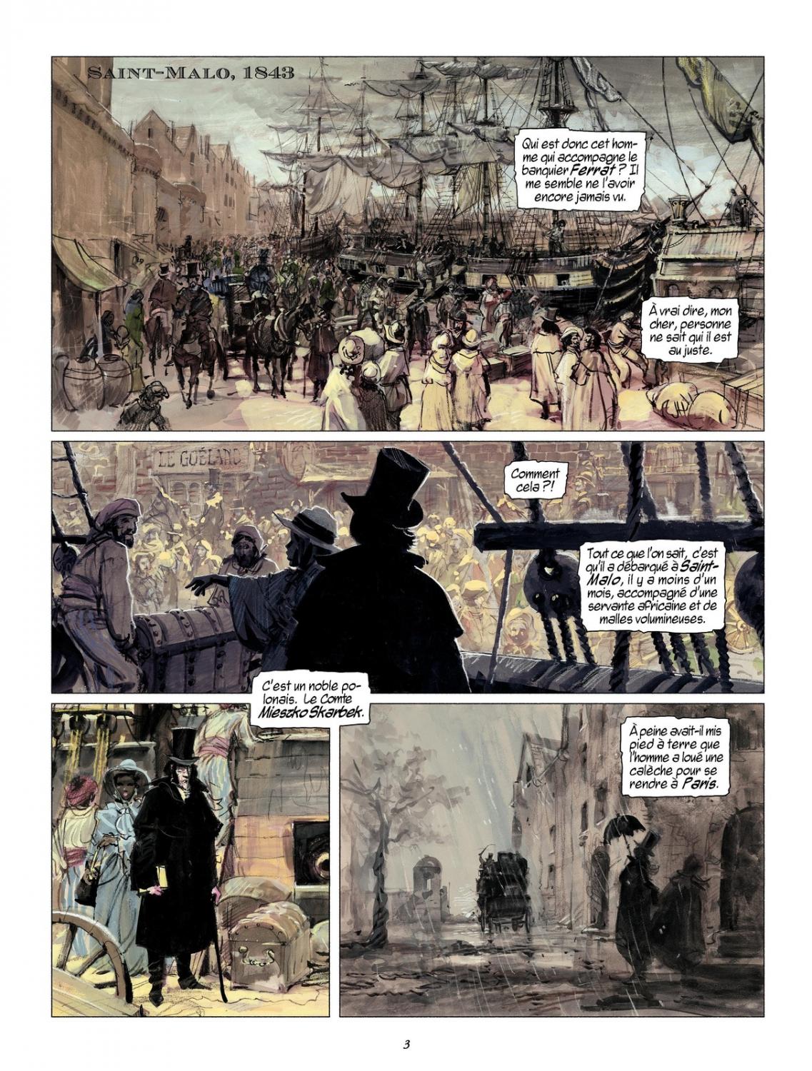 Výše zmíněný odstavec platí pro obě části tohoto svazku Mistrovských děl evropského komiksu, ale pro první beze zbytku. Pomsta hraběte Skarbeka, jejímž scénáristou je Yves Sente, opravdu hodně odkazuje na slavný vzor a zpětně mu skládá poklonu. Odehrává se v Paříži roku 1843. Hrabě Skarbek, zničeho nic se objevivší boháč, hledá své staré nepřátele, aby připravil rafinovanou pomstu a pomocí iniciovaného soudního řízení postupně dostal všechny padouchy na kolena. Příběh se točí kolem obrazů, které Skarbek jako mladý namaloval a jež získaly na ceně hlavně jeho domnělým skonem a výjimečností, jak ostatně bylo padouchy plánováno. Jenže, jako už to v dobrodružných románech devatenáctého století bývá, nic není jak se zdá a příběh vás protáhne cestou do Karibiku a zpět a to z několika úhlů pohledu a také s několika dějovými kotrmelci a jisti si nemůžeme být ani postavou hlavního hrdiny.