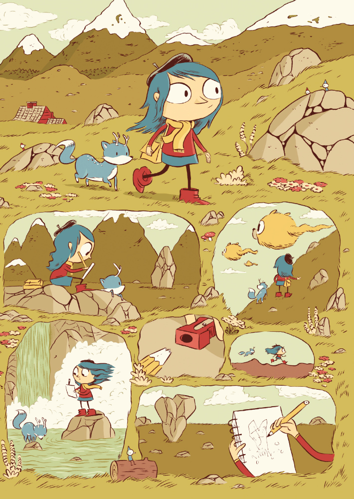 Hilda je velice klidný milý komiks. Skoro bych řekl relaxační. Luke Pearson rozhodně nikam nepospíchá a vrší na sebe různé skryté i viditelné vtípky, paralely se světem lidí a různé mytologické podivnosti. Nechává tím vším Hildu tak nějak proplouvat a s její dětskou netrpělivostí, ale i naivní moudrostí reagovat. Většinou jsou to právě okolní postavičky, které mají nějaký problém a Hilda je tu od toho aby ho vyřešila, protože ten problém většinou nevědomky způsobila. I kresba a barvy, jako by vás měly pohladit po duši. Pearson využívá tmavší pastelové odstíny, a tak vše od modrých obrů přes Hildiny modré vlasy působí naprosto přirozeně a přírodně. Kresba je svým způsobem jednoduchá, ale ve své jednoduchosti propracovaná. Nepostrádá detaily, ale šetří tahy a promlouvá k vám právě spíše kontrastem barev. I rozvržení panelů je na většině knihy vyloženě statické i když se občas stane, že otočíte stranu a BUM, uvidíte, jak jejich obsah najednou přetéká mezi sebou a Pearson si vyloženě hraje. A na další straně opět přejde ke klasice. Mezi samostatnými příběhy s malými panely pak najdete i několik vysvětlujících mezistránek s velkými krásnými ilustracemi - jako je například Hildin pokojíček, nebo představení všech typů obrů, což je pastva pro oko.