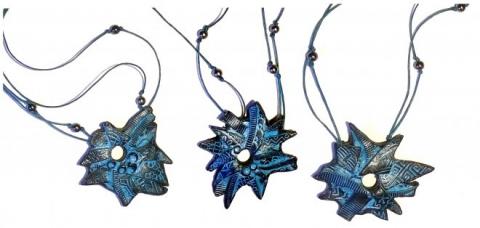 V těchto dnech jsme přidali několik nových odměn. Jako první jsou přívěsky na krk "Lví hříva", vyrobené autorkou Vilmou Kadlečkovou technikou fimo speciálně pro tuto antologii. Zobrazují rozevlátou lví hřívu, jsou barevně laděné do černo-tyrkysova a jejich průměr je zhruba 5-6 cm.