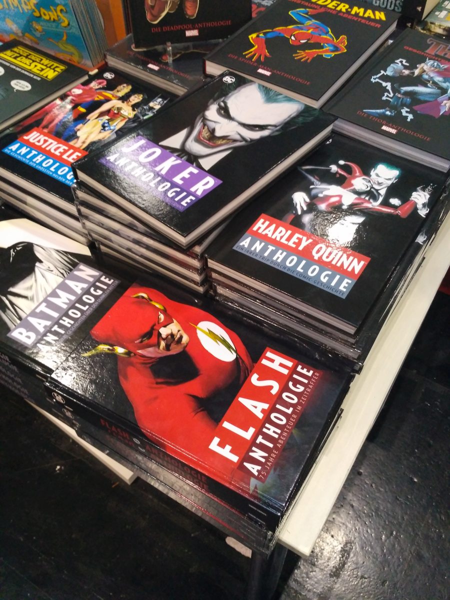 Nejen o scénkách a diskusích je Comic Con. Ten je hlavně o nakupování. Nutno podotknout, že v mém případě ne komiksů. Blizkost Vienna Comic Conu má totiž jednu zásadní vadu. Německy mluvící prostředí a obrovský domácí trh. Pokud nemluvíte německy, můžete si nechat zajít chuť na většinu nabízené produkce. Navíc němečtí vydavatelé nezřídka nepřekládají názvy a titulní strany komiksů, takže si dokonce musíte dávat velmi dobrý pozor. Zvlášť u Mangy a DC. Kdepak “Plnoplátový alchymista”. Člověk tak prožije ohromné nadšení, že našel nějaký nesehnatelný kus, a následně zklamání a rozhořčení, že vy to nemůžete sehnat ani anglicky a Němci si to čtou ve své řeči. Německá produkce je tu skutečně obrovská. DC a Marvel tu má zastoupení v různých speciálních sebraných edicích, klasických boocích i omnibusech. Kdo je zastoupen ještě víc, je manga. Na několika stáncích bylo obrovské množství titulů v němčině a to i některé, které jsou opravdu v angličtině nesehnatelné.