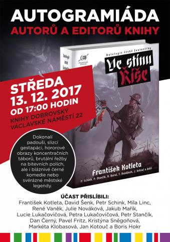 Tento popkulturní blitzkrieg vám editoři a autoři osobně představí na velké autogramiádě, která se uskuteční ve středu 13. prosince 2017 od 17.00 v knihkupectví Knihy Dobrovský (Václavské nám., Praha).