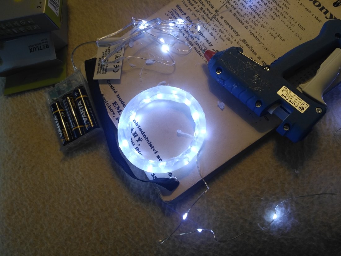 - led pásky nebo malý vánoční řetěz (Kaufland 99kč 30 LED)