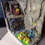 A to je konec; přilepil jsem i druhou stěnu a booknook je hotov. Vlastně ne, já do něj ještě umístil postavu obyvatelky vaultu v typické kombinéze. Pro tenhle účel mi skvěle posloužila Black Widow z trafikové kolekce Marvel figurek, ale stejně by posloužil třeba Punisher nebo Cable. Nakonec ji můžete odříznout od podstavce a nalepit. Další variantou je zabudovat podstavec do podkladu. Na to je potřeba myslet když plánujete výšku krajiny. Pro příklad přikádám fotku, jak jsem to udělal s Crocem a Bladem v jejich vlastním diorama. Postavy z téhle série figurek jde i dost měnit a upravovat pomocí mikrovrtačky s brusnými kotoučky. Ty postavy na poslední fotce jsou například Spider-man a Vision.