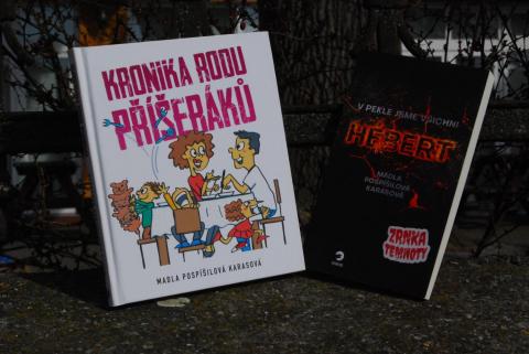 K jejich vydání došlo v podstatě omylem. Čas od času jsem své zážitky s tehdy malým synem ventilovala na sociálních sítích a podobně postiženým matkám v mém okolí se tyto mé výlevy neskutečně líbily. Kolem těch příspěvků se strhla docela lavina a já byla ze všech stran bombardována dotazy, kdy už to konečně vydám. Tak jsem se jednou hecla a během lázeňského pobytu se dvěma předškoláky jsem večer co večer s lahví červeného vzpomínala a smolila vzpomínky nedávno minulé. A pak jsem se své dílko pokoušela v různých nakladatelstvích udat ve stylu: „Dobrý den, jsem Mařka z Horní dolní, nic jsem nikdy nevydala, nikde jsem nesoutěžila, nic jste ode mne zatím nečetli, ale napsala jsem knížku, která je děsně dobrá a vtipná.“ Z těch e-mailů s tradiční odpovědí „Váš rukopis je velmi zajímavý, ale nehodí se nám do edičního plánu...“ bych si mohla vytapetovat celý obývák. Ale ve dvou nakladatelstvích se rukopis líbil. V jednom však komunikace záhy ustala, ale v nakladatelství Epocha mi dali šanci a já jsem jim dodnes neskutečně vděčná. Vždycky, když mám na začátku prosince výročí vydání svého debutu, obětuju pro ně pannu a černého kozla. Blbé ale bylo, že do vydání dost zasáhl covid, zavřená knihkupectví a nemožnost propagovat svou novinku tak, jak by si zasloužila, takže jsem pracovala s tím, co se dalo. Ale zase jsem si užila autorské čtení na střeše uničovské radnice (ke zhlédnutí je na YouTube), což asi jen tak nějaký autor nezažil. Teď se ale zdá, že i Kronika rodu Příšeráků chytá druhý dech, tak snad si k ní čtenáři najdou cestu.