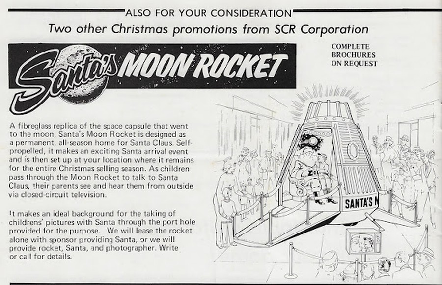 1960s & 1970s, the Santa Claus Rocket Corporation - Lloyd B. Laster jako jeho hostesky, pilot a copilot. Santa’s Rocket Sleigh, Santa’s Rocket Ship a Santa’s Space Sleigh