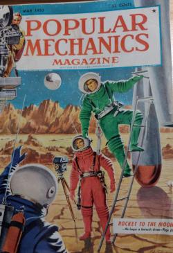 Heinlein například ve spoustě svých povídek i románů pracuje s jaderným palivem jako zdrojem pro pohon rakety na měsíc, nebo ještě dál. Tenhle princip byl použit například ve filmu Destination Moon z roku 1950, na kterém se Heinlein také podílel, a notně rozebírán právě v populárních technických magazínech. Bylo by podivné, kdyby ne. Třeba květnový Popular Mechnics z roku 1950 se věnuje tomuto filmu a rozebírá v něm nastíněné technologie v praxi. V článku k Destination Moon Dr. Shue-Shen Tsien, profesor na CIT, popisuje tyhle principy, jako kdyby to byla otázka 14 dní, než se vyřeší všechny problémy, a v roce ´51 se může letět. Z jeho pohledu je problém jen ve velikosti reaktoru, jinak je vše vyřešené. Článek Rocket to the moon – No longer fantastic dream ale jde ještě dál. K mezikontinentálním, nebo dokonce vnitrofederálním letům touhle jadernou raketou. Ano, v roce 1950 očividně letadům už odzvonilo. A přesně tenhle celý koncept najdeme v mnoha povídkách z Heinleinova cyklu. Třeba Muž, který prodal měsíc obsahuje oba dva. Ale i v Občas to někde bouchne, která téhle povídce předchází, se dostáváme do budoucnosti, ve které je jádro sice velkým strašákem, ale zároveň je používáno na denní bázi prakticky na všechno, a pokud už je zmíněna raketa, ať už pro let v atmosféře nebo do vesmíru, že bude jaderná je jaksi samo sebou. Chemické palivo už je jen nouzové řešení. Není to ale pouze pohon. Celý ten technooptimimus té doby, kombinovaný s několika dalšími faktory, okořeněný omezenými znalostmi, je nakonec svým způsobem roztomile naivní i fascinující. O jádru to ale bude jindy. Mám rozečteno několik krátkých článků jak o mírovém využití, tak... no, řekněme z příručky civilní obrany. Dnes to bude o raketách. A co to má společného s prvním odstavcem. Inu, celý ten svět jako by Falloutu a jeho předválečné éře z oka vypadl.