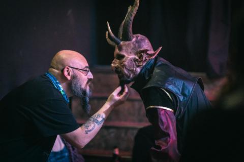 Asi najväčším ťahúňom v hlavnej sále na poschodí bol tento rok rozhovor s profesionálnym maskérom Jakubom Gründlerom. Ten porozprával svoje skúsenosti z práce na veľkých filmových projektoch a predviedol aj živý model, namaskovaný špeciálne pre Horrorcon.