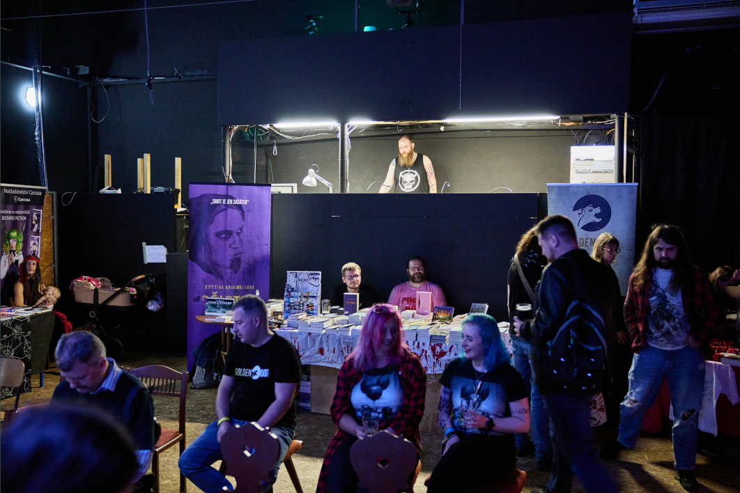 Přestože byl con v podstatě komorní a undergroundový, i tak se to tam dle mého vkusu a přesvědčení během celého (pod)večera hemžilo poměrně slušným zástupem lidí a za sebe si, co se týče návštěvnosti, nemohu na nic stěžovat. Počet návštěvníků mi přišel vzhledem k formátu adekvátní. Sama jsem z velké dálky přizvala téměř desítku blízkých, které zajímal především křest naší knižní sbírky poezie a již neholdují hororu, erotice, krvi ani čemukoliv temnému. Přesto byli všichni jak ze samotného programu HorrorConu, tak z jeho organizační stránky a prostředí jako takového nadšení a nejspíš mě doprovodí i na příští ročník, což mě opravu mile překvapilo.