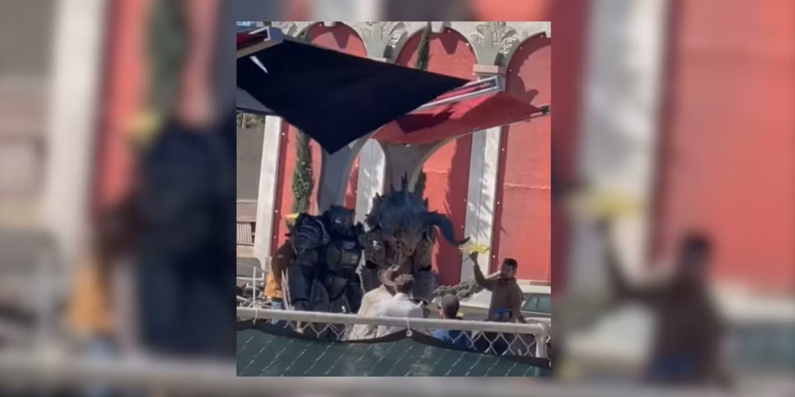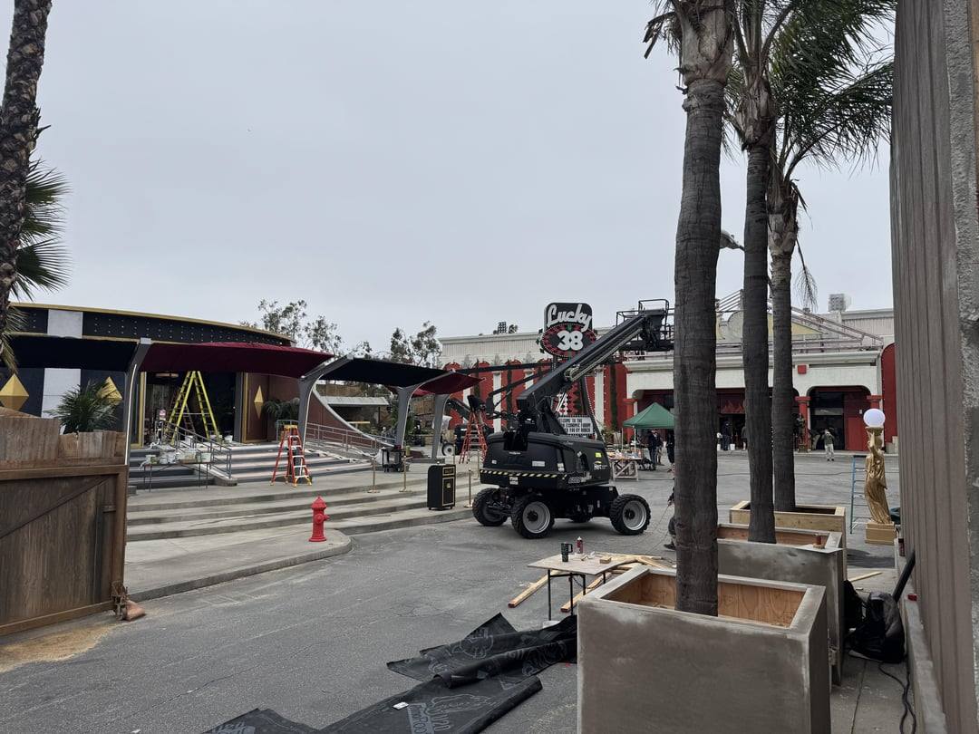- Období během událostí hry New Vegas: Vegas už není nové, ale stále funkční. Kulisy jsou opotřebované, ale osvětlené. Vidíme přítomnost NCR i Legie , mění se nápisy na kasinech, a spekuluje se o výskytu Securitronů . Na setu se objevila maska Deathclawa (https://www.tiktok.com/@starhazara/video/7483318396638022942) a škrábance na dveřích Lucky 38, což naznačuje, že bestie dostanou víc prostoru – možná právě oni způsobí zkázu města? Spolu s Deathclawem vidíme také podivnou verzi power armoru NCR rangera.