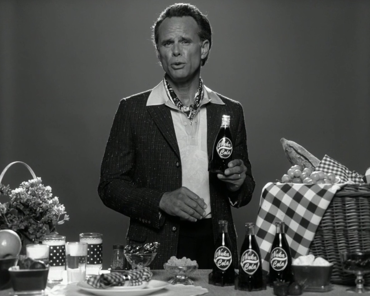 Na pódiu se objevili Walton Goggins (Ghoul), Ella Purnell (Lucy) a Aaron Moten (Maximus) a přivezli s sebou první ukázku ze druhé řady. Před samotnou scénou ale diváci dostali ještě jeden předkrm – krátký předválečný šot s Cooperem Howardem , ještě jako člověkem. Ve videu vidíme klasický předválečný den: Cooper točí reklamu na Nuka-Colu , pak pro opalovací krém Atomic Sunscreen , a nakonec přijde řada i na propagační spot lákající do kasina Lucky 38 v New Vegas .
