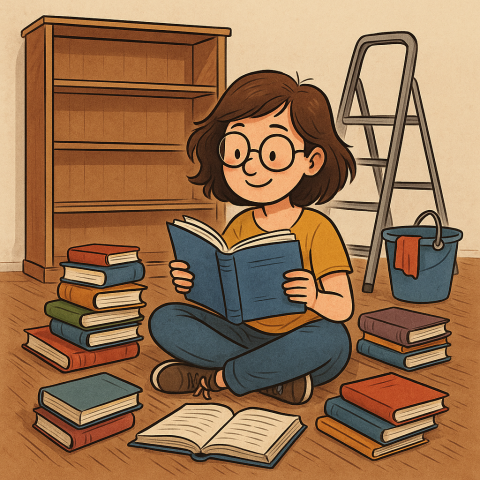 Až příští týden budu uklízet knihovnu po malování, už teď vím, že úklid skončí fiaskem. Nejdřív si budu chtít jen otřít prach z hřbetů. A pak zjistím, že místo třídění a rovnání sedím uprostřed hromady knížek a čtu. Koneckonců – je to taky forma návratu ke kořenům. Někdy je potřeba si ten čtenářský vztah znovu oprášit. Doslova.