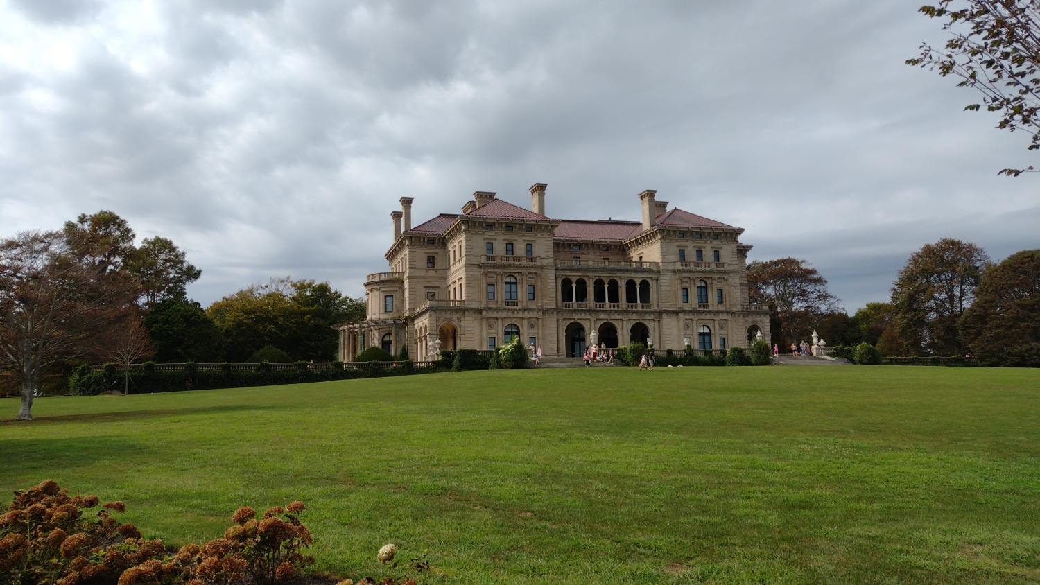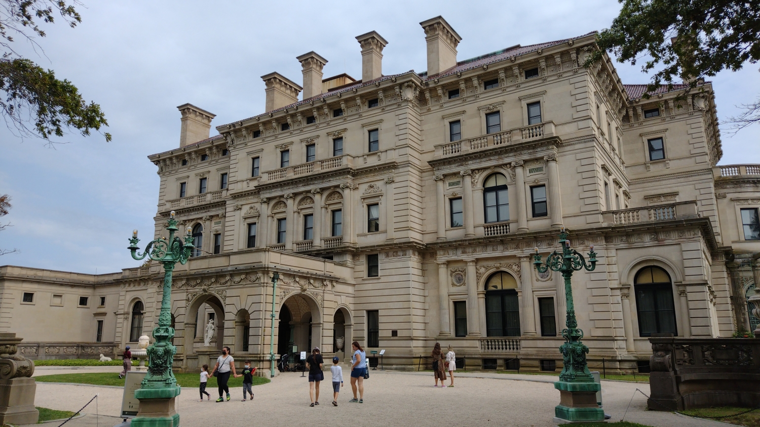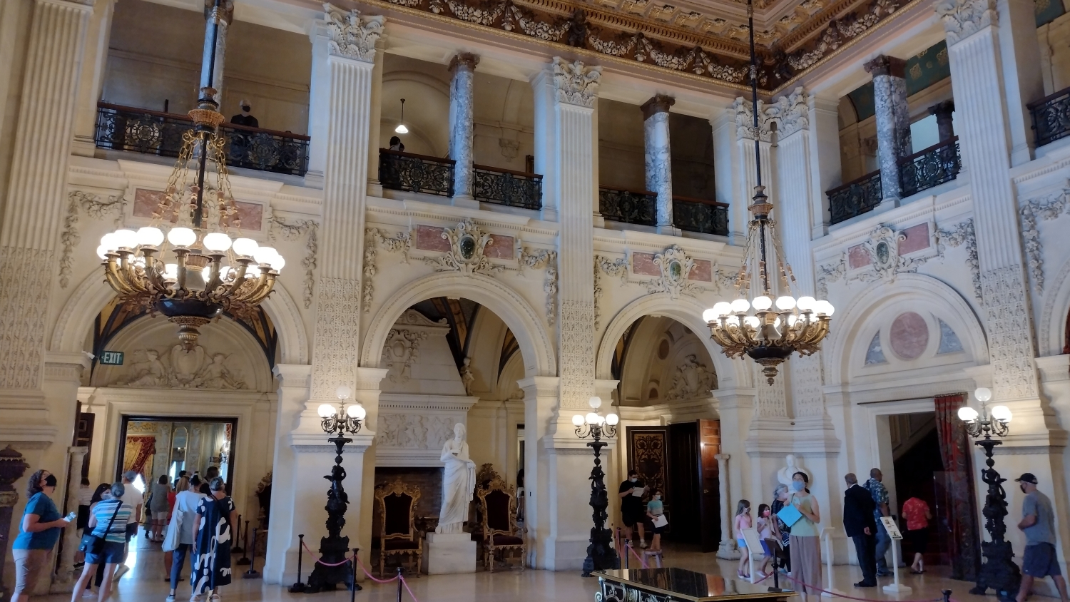 Až vám někdo bude tvrdit, že v USA nejsou hrady a zámky, kecá. Hrady jako takové tu samozřejmě nejsou, i když pobřežní pevnosti by se tak klidně daly označit a možná vám nějakou někdy taky ukážu, i když to bude fakt rychlovka. Ale zámky, ty tu jsou. Bohaté americké rodiny vydělávající hlavně na železnici si totiž na Rhode Islandu postavily letní sídla, takže po projetí Portsmouthu a Newportu se dostanete k pobřeží a na něm byste, kdyby nešlo o opravdu rozlehlé objekty, narazili na poměrně surrealistický pohled, městskou čtvrť složenou jen ze zámků. The Elms, Rosecliff, Marble House, The Breakers a další zámky evropského stylu stojí vedle sebe, resp. kousek od sebe, s menšími zámečky a vilkami, které je občas oddělují. Dokonce je tu silniční vláček, který vás mezi nimi provede, ale pro rodinu čítající čtyři lidi je návštěva jednoho z nich až až. Navíc byl covid a i když je všechny spravuje jedna nadace, spousta těch budov byla zavřená.