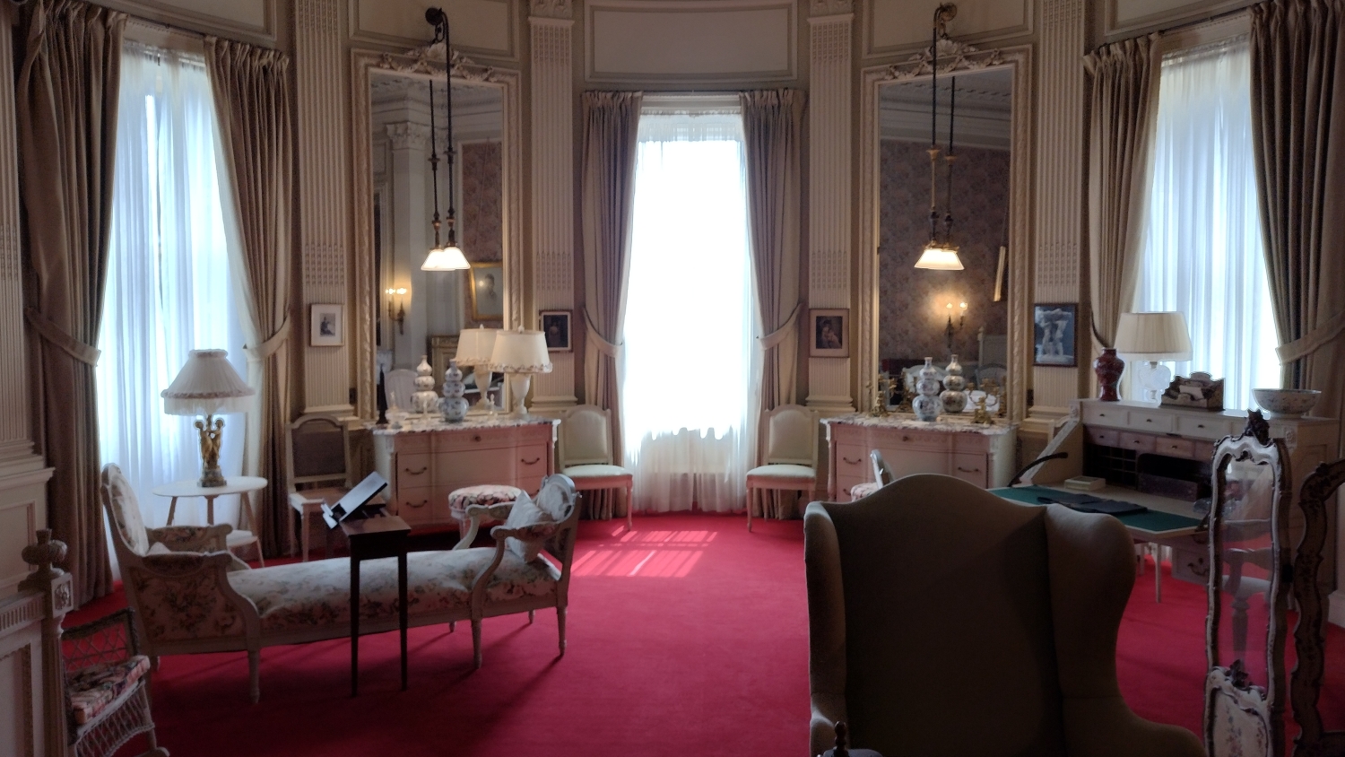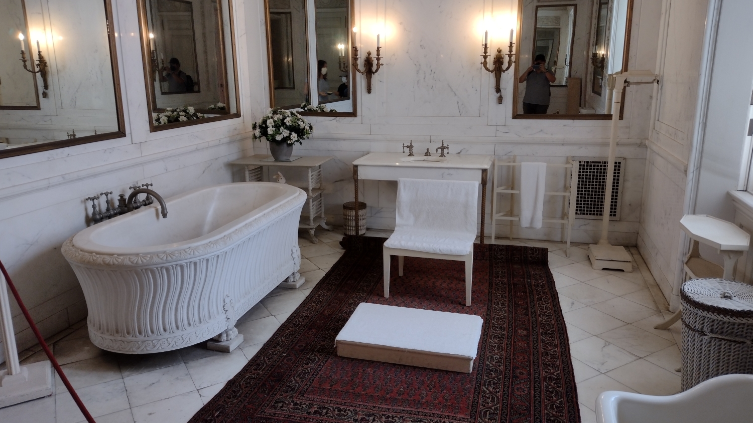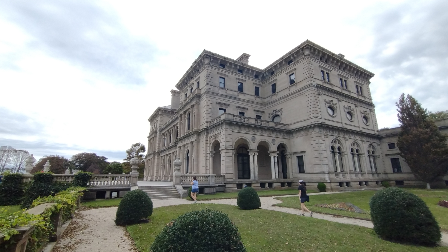 Až vám někdo bude tvrdit, že v USA nejsou hrady a zámky, kecá. Hrady jako takové tu samozřejmě nejsou, i když pobřežní pevnosti by se tak klidně daly označit a možná vám nějakou někdy taky ukážu, i když to bude fakt rychlovka. Ale zámky, ty tu jsou. Bohaté americké rodiny vydělávající hlavně na železnici si totiž na Rhode Islandu postavily letní sídla, takže po projetí Portsmouthu a Newportu se dostanete k pobřeží a na něm byste, kdyby nešlo o opravdu rozlehlé objekty, narazili na poměrně surrealistický pohled, městskou čtvrť složenou jen ze zámků. The Elms, Rosecliff, Marble House, The Breakers a další zámky evropského stylu stojí vedle sebe, resp. kousek od sebe, s menšími zámečky a vilkami, které je občas oddělují. Dokonce je tu silniční vláček, který vás mezi nimi provede, ale pro rodinu čítající čtyři lidi je návštěva jednoho z nich až až. Navíc byl covid a i když je všechny spravuje jedna nadace, spousta těch budov byla zavřená.