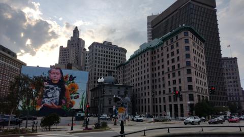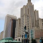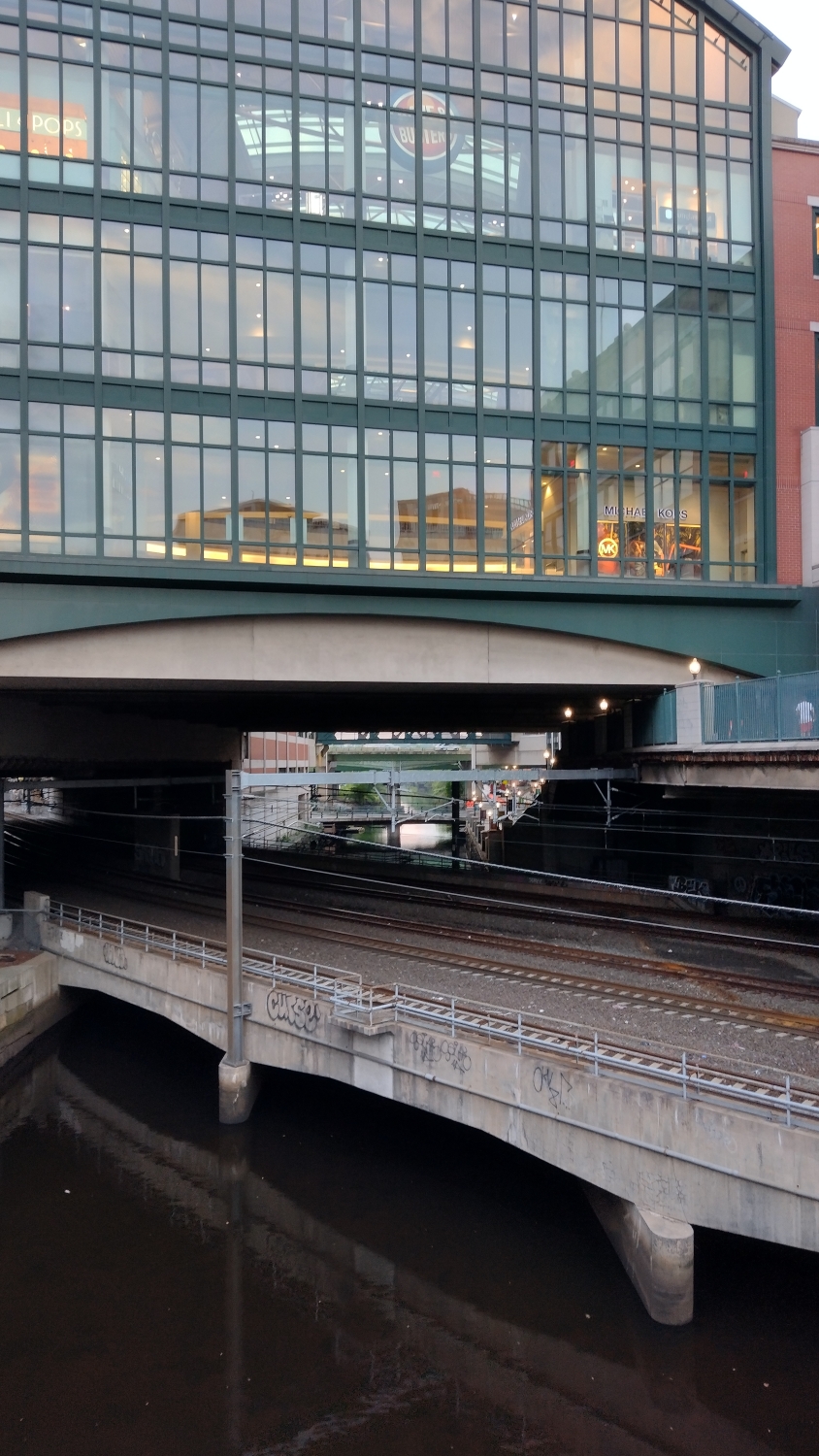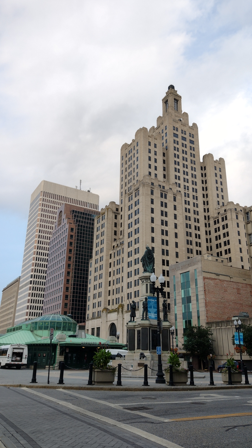 Cesta nás vede zpět do centra přes Miskatonic, tedy Providence River. I když ne tak docela. Arkham je a není Providence. Lovecraft Providence hodně prochodil, proto taky v jeho dílech má svoje místo a jeho hrdinové z něj dost často pocházejí. V jeho povídkách se nevyhneme spoustě reálných budov. Kromě zmíněného ateliéru je zde i dům Charlese Dextera Warda, v centru najdeme jím popisovanou radnici, kterou Ward taky navštívil, a taky Superman Building, respektive Industrial Trust Tower, která je dominantou města, i když momentálně opuštěnou. Tu zase Lovecraft zmiňuje společně s Kapitolem v povídce Haunter of the Dark. Dalo by se říct, že Arkham je taková stínová kopie Providence, kterou Lovecraft používá, aby svoje město nepošpinil, aby mu neublížil.